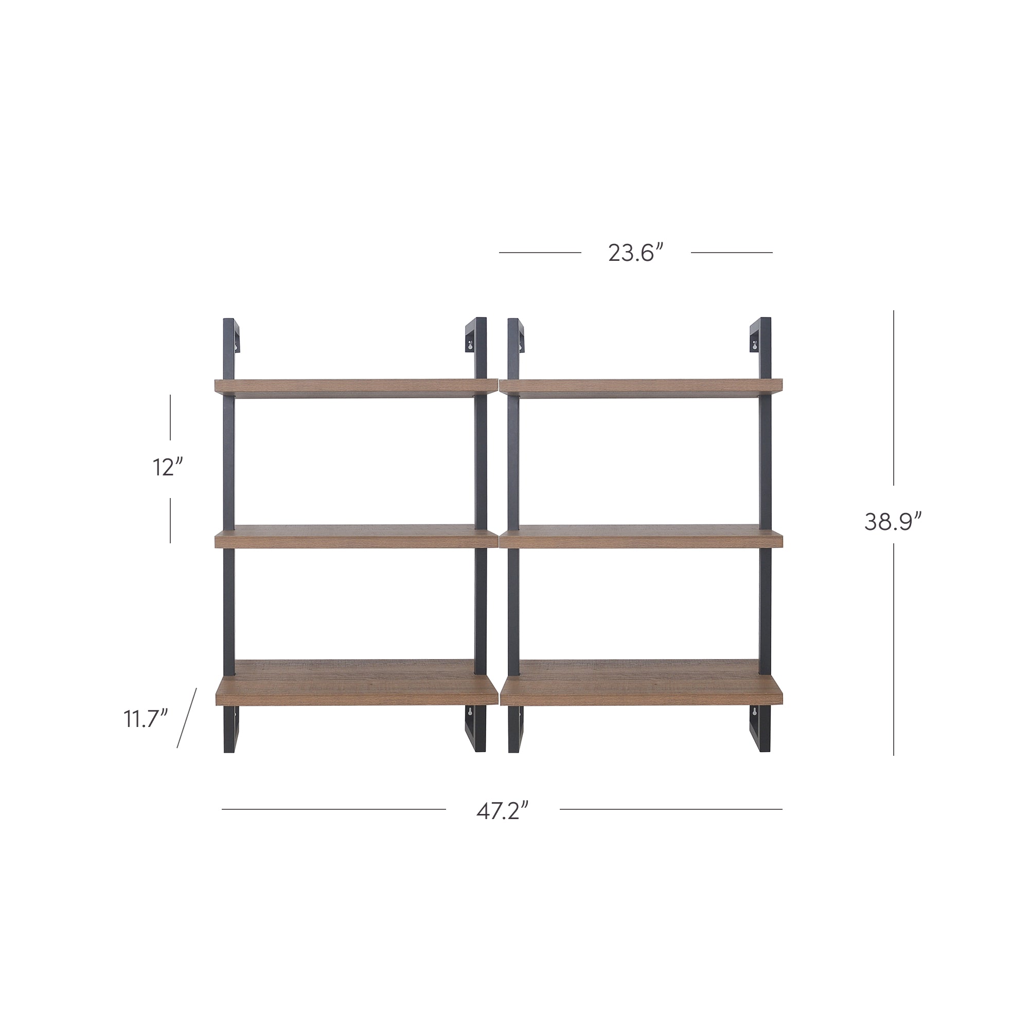 3-Shelf Ladder Bookshelf Oak Matte Black (Set of 2)