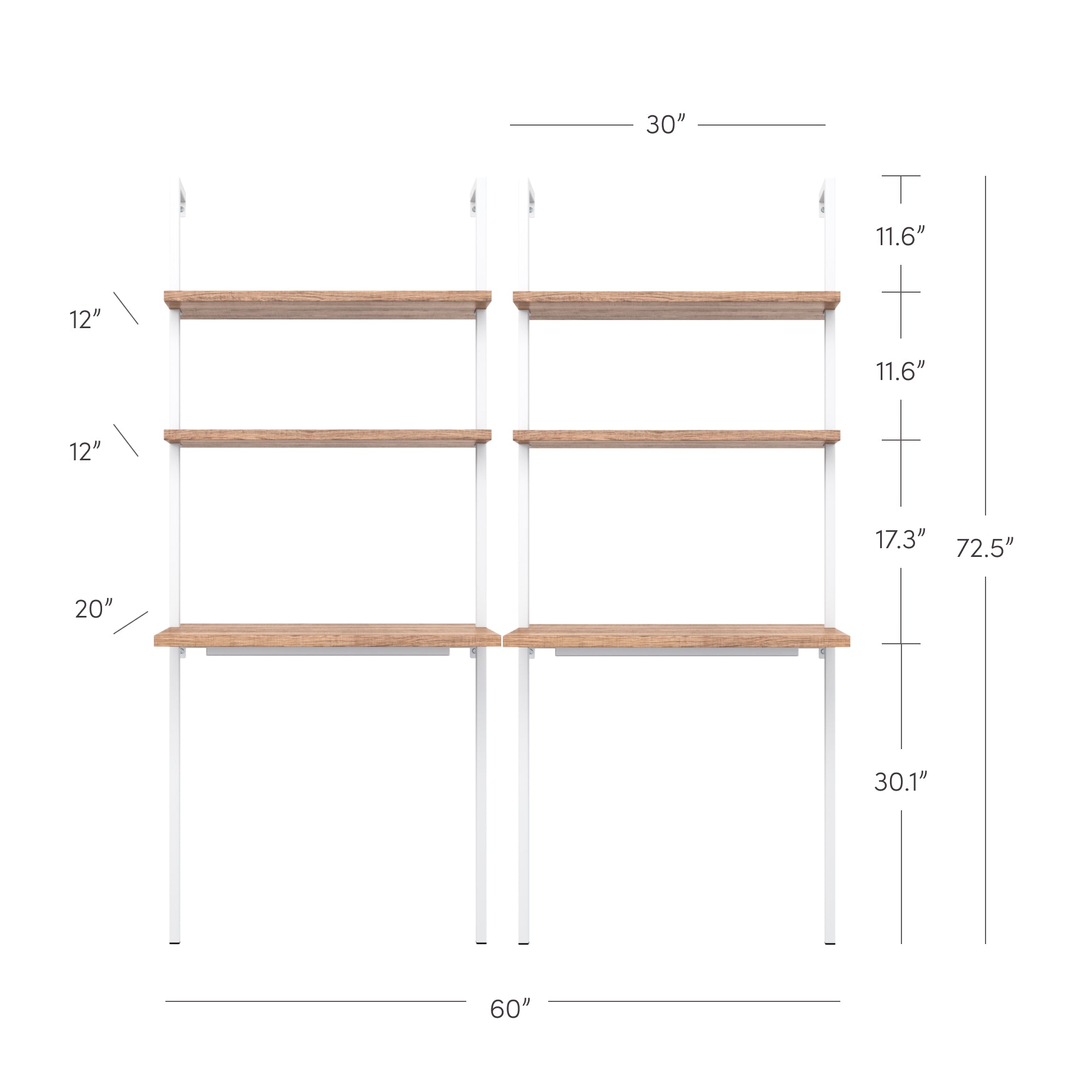 Wood Wall Mount Ladder Desk Oak (Set of 2)