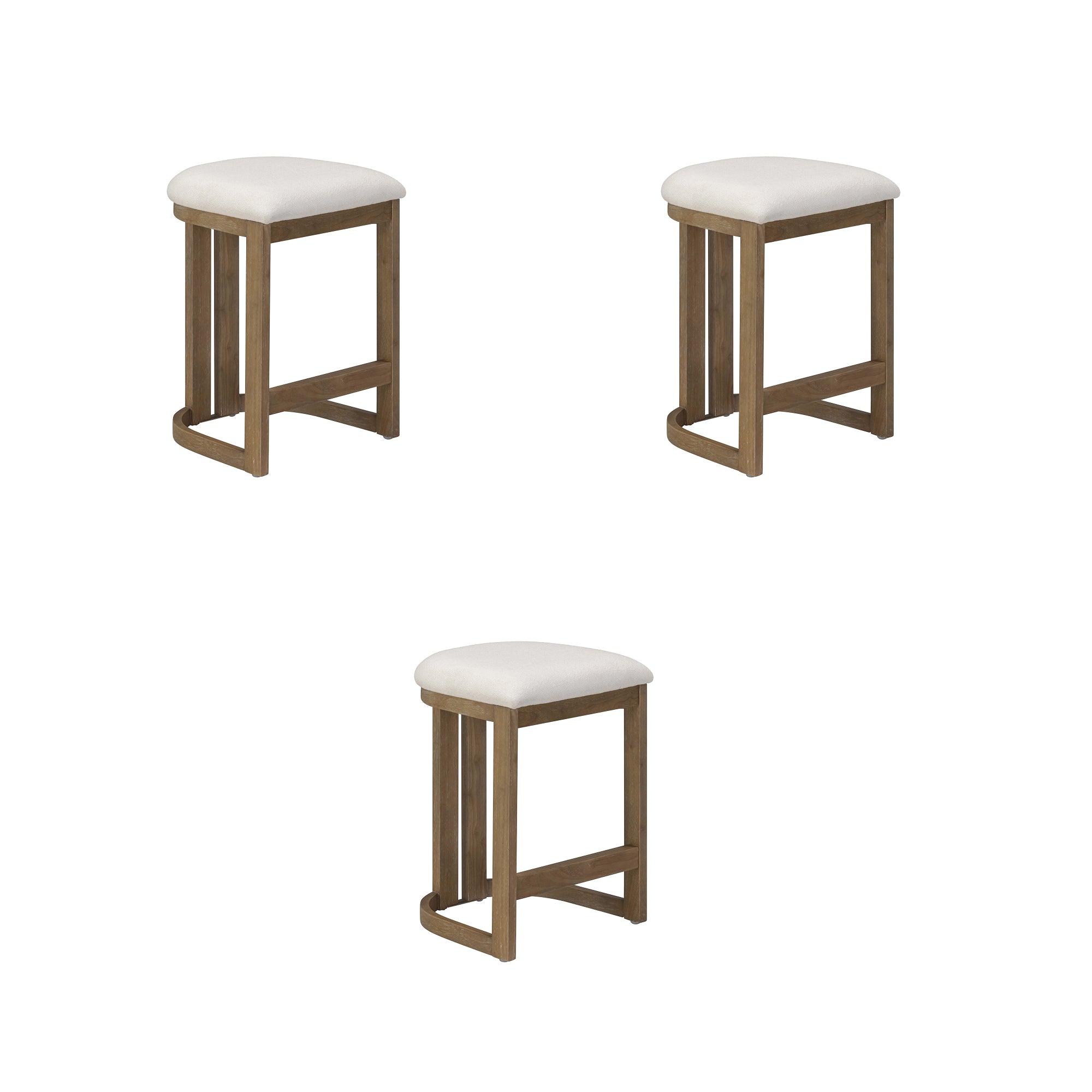 The Veya Backless Barstool Set brings effortless modern style and comfort to your space. Each stool features a thick, upholstered seat in soft Light Brown-Cream Boucle at a perfect 25" height—ideal for kitchen counters or casual dining. Curved aprons and stretchers add subtle elegance, while the solid wood construction ensures lasting durability. This set combines comfort, craftsmanship, and contemporary design in one inviting package.