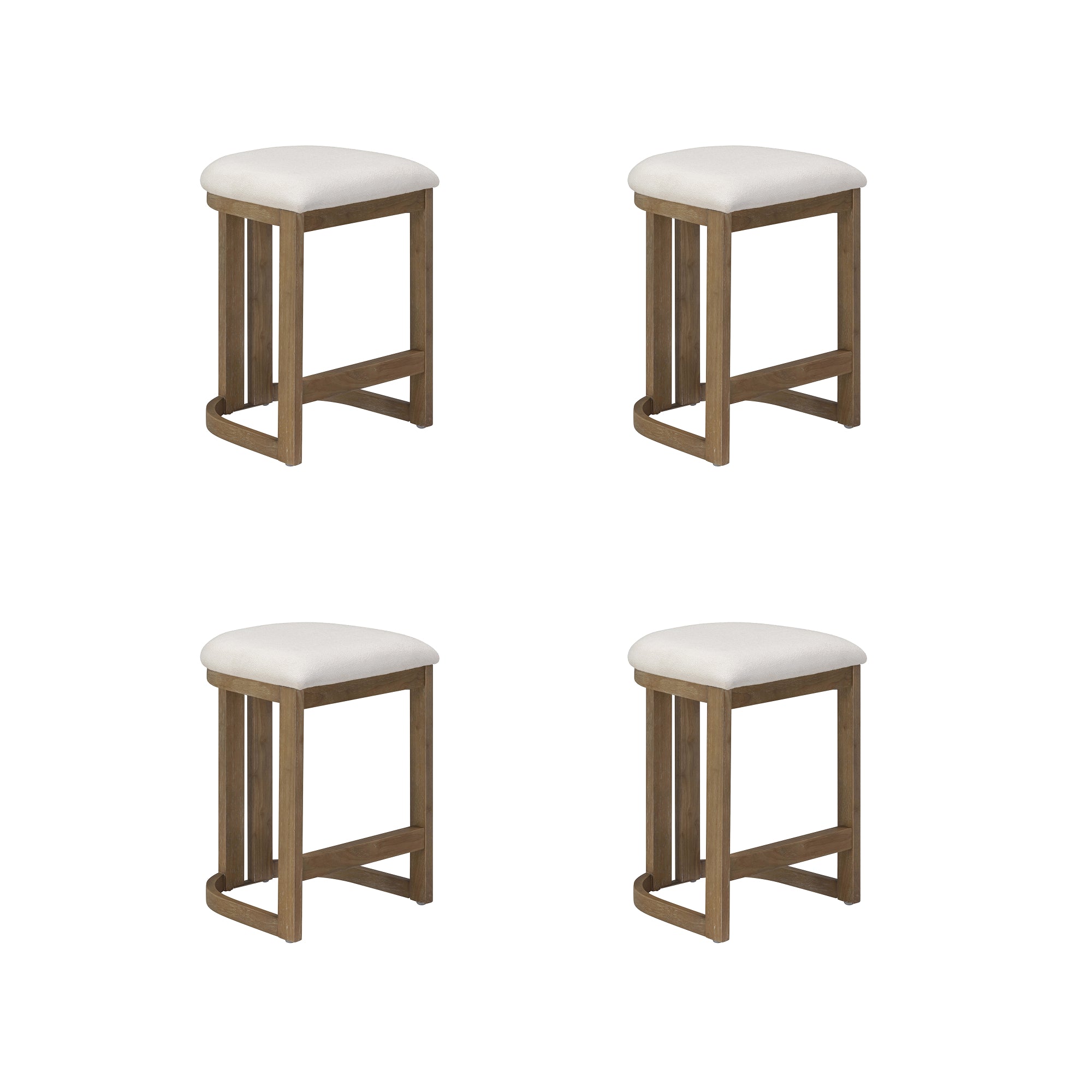 The Veya Backless Barstool Set brings effortless modern style and comfort to your space. Each stool features a thick, upholstered seat in soft Light Brown-Cream Boucle at a perfect 25" height—ideal for kitchen counters or casual dining. Curved aprons and stretchers add subtle elegance, while the solid wood construction ensures lasting durability. This set combines comfort, craftsmanship, and contemporary design in one inviting package.