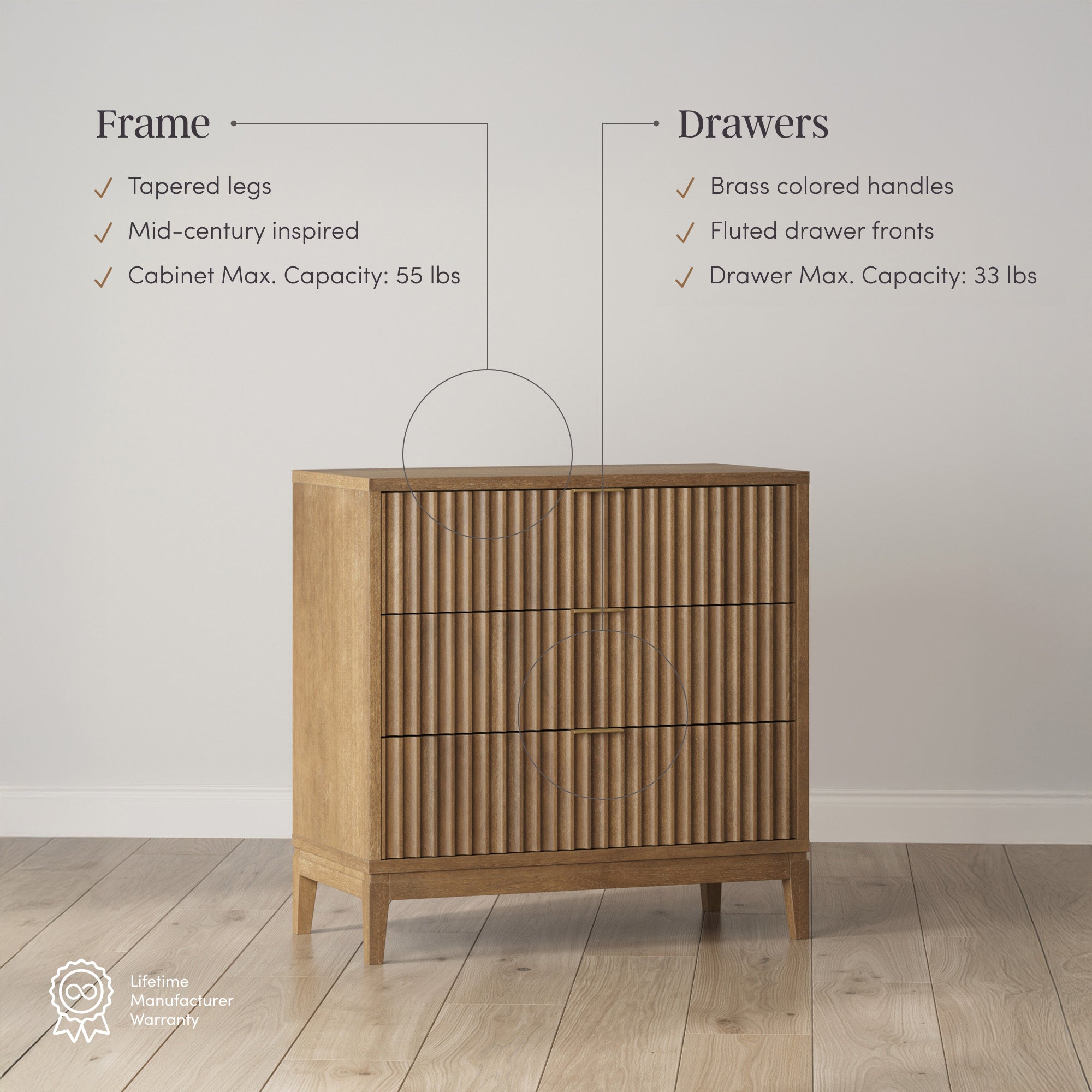 Bohemian Solid Wood 3-Drawer Fluted Dresser Light Brown (Set of 2)
