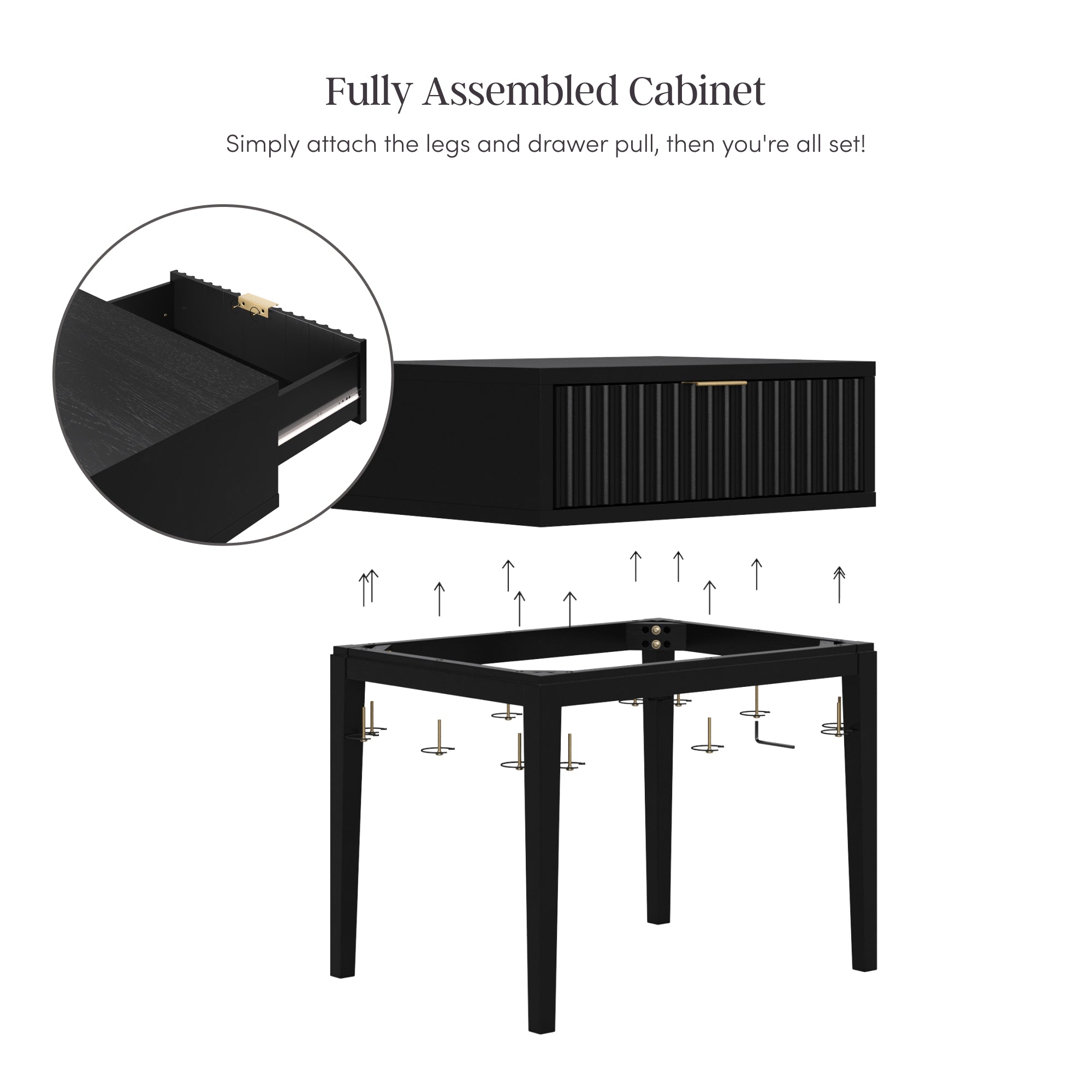 Sweet dreams just got sweeter with the Charlie Bedroom Set. This trio includes the wall-mounted Charlie Headboard—wrapped in soft textured boucle or faux leather and hung with adjustable brown leather straps—and two Jasper Nightstands. Jasper’s fluted drawer front in a black oak finish, brass color handle, and tapered legs bring bohemian charm to your space. With deep storage and timeless style, this set is the perfect blend of form and function for your bedroom. All mounting hardware included.
