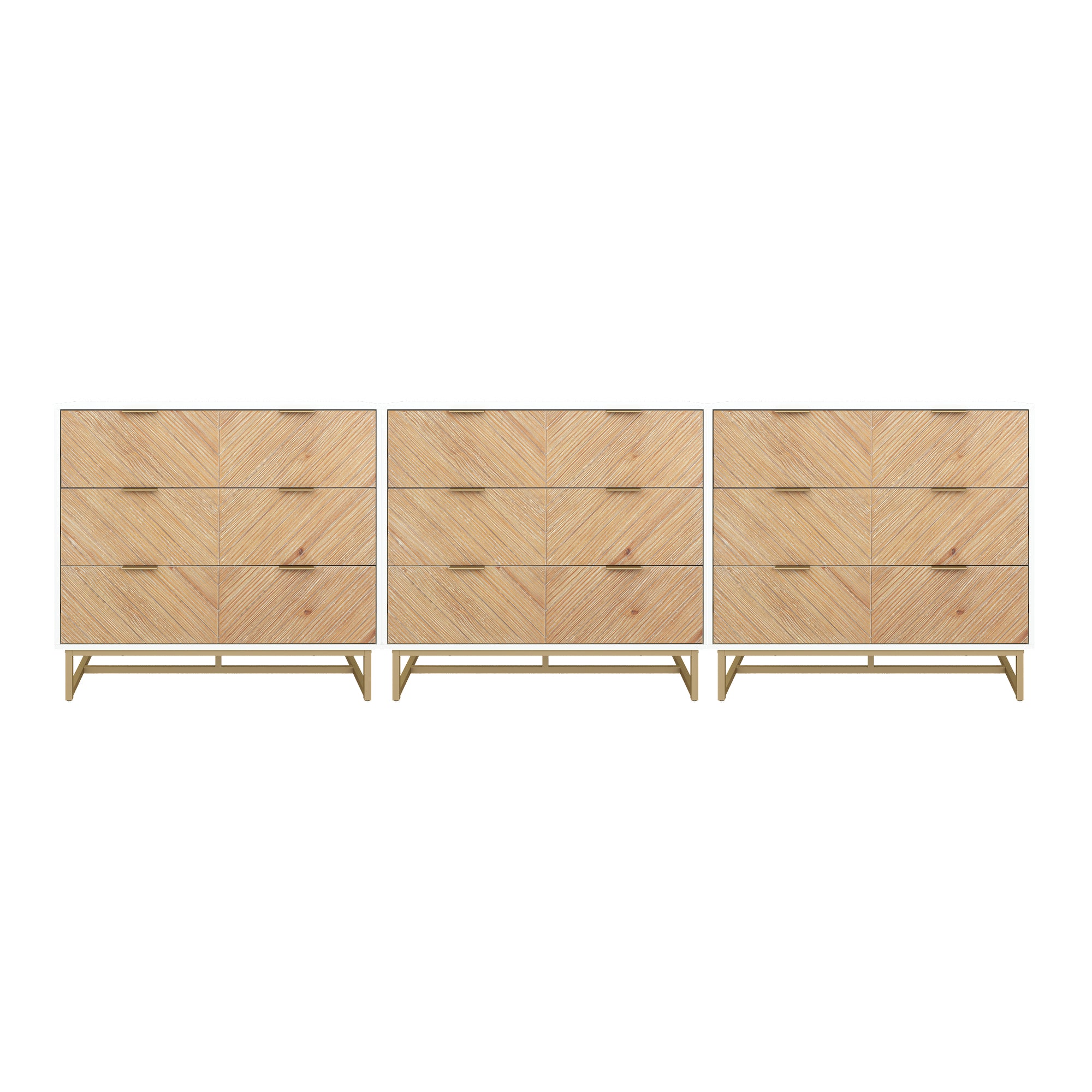 Boho Herringbone 3-Drawer Dresser White (Set of 3)