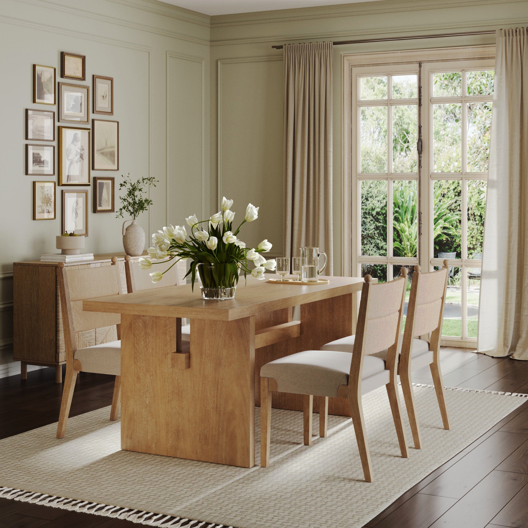 Bring coastal charm and comfort to the table with the Cove Dining Chair. Its 19-inch seat height is perfect for lingering meals, while the woven synthetic seagrass backrest and wraparound upholstered cushion offer breezy style and lasting comfort. A solid wood frame with tapered legs ensures durability, and natural variations in the wood make each chair one of a kind. Whether It's a lively gathering or a quiet dinner, Cove makes every seat feel special.