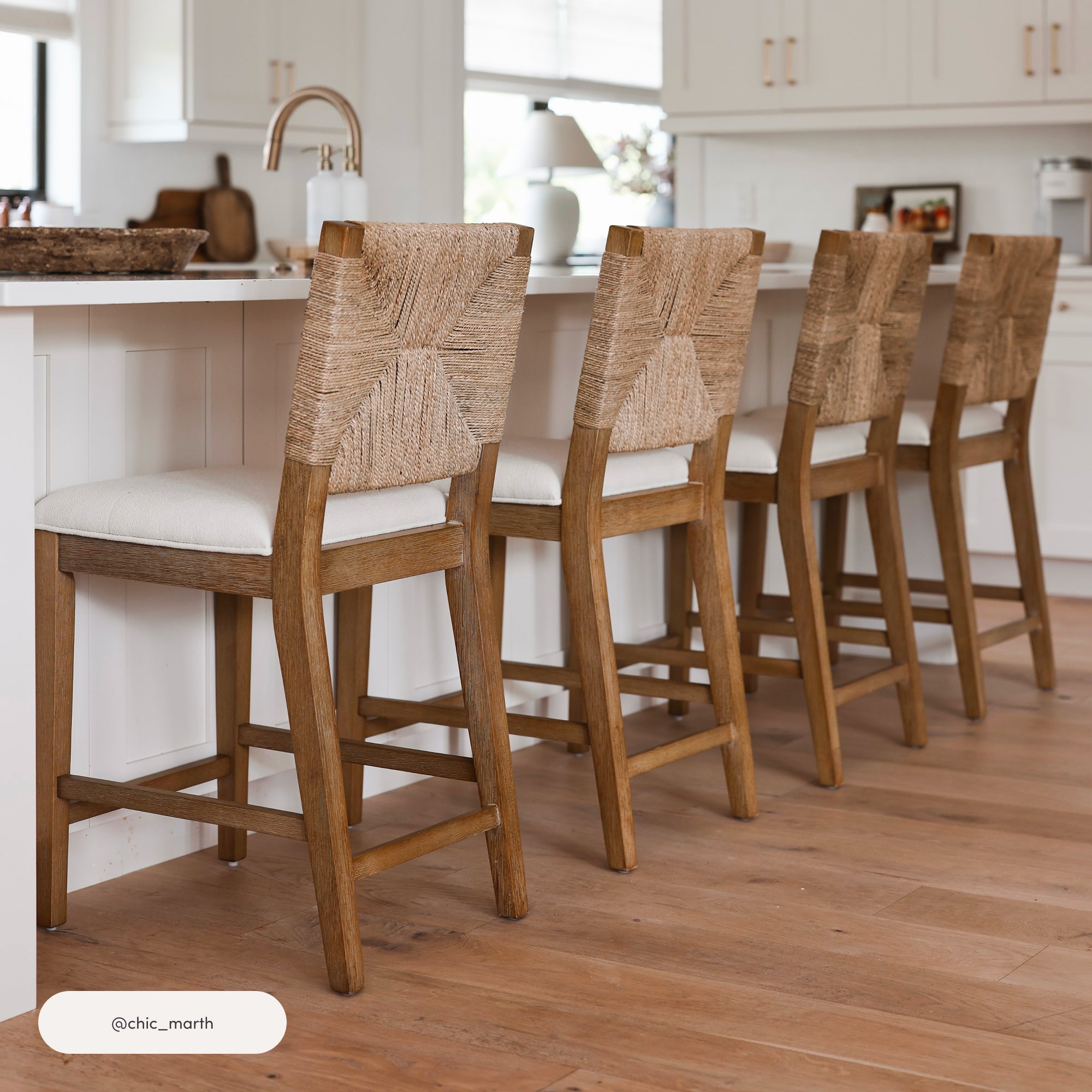 Introducing the Beacon Bar Stool, where comfort meets style right at your counter! With its natural seagrass woven backrest, you'll be reminded of breezy seaside getaways, while the plush textured boucle seat promises endless hours of comfort. And let's not forget its solid wood frame, which doesn't just offer durability but also adds that classic touch to your space. Whether you're sipping morning coffee or enjoying a late-night snack, the Beacon Bar Stool is your perfect companion. Pair with the other pieces in our Beacon collection for the perfect matching set.