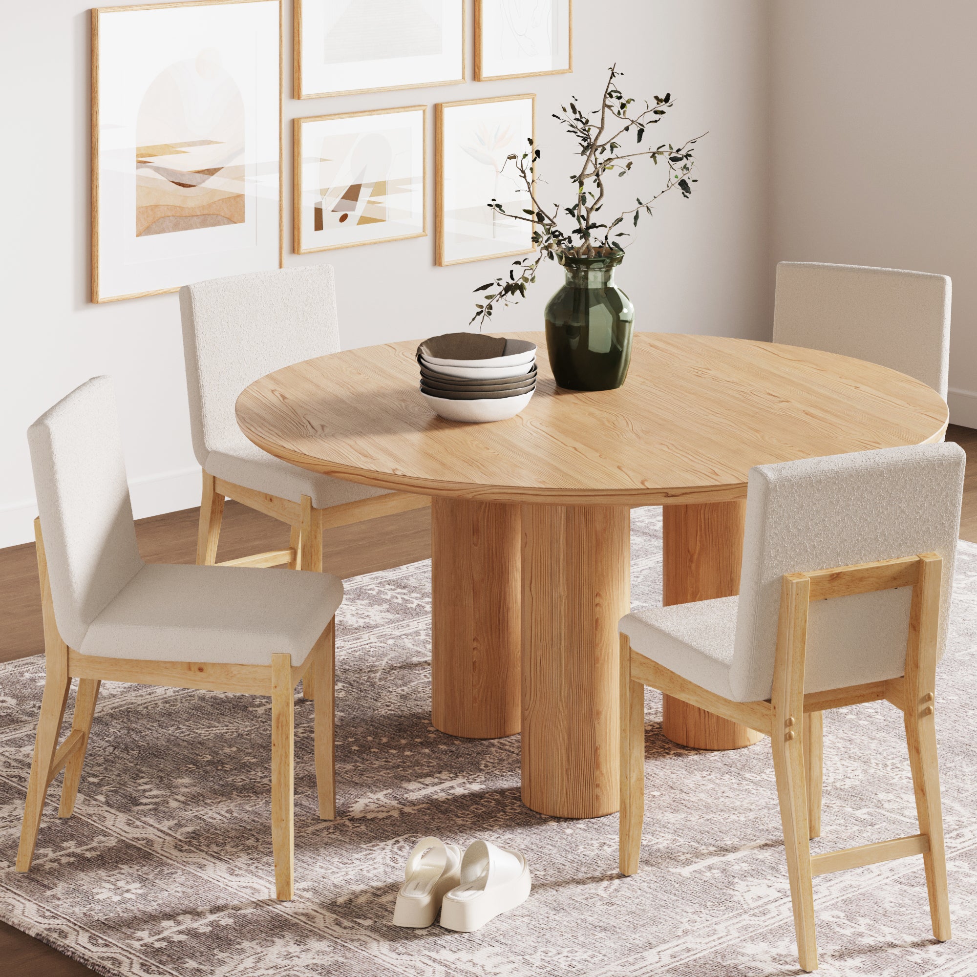 We loved our Gracie Bar Stool so much, we had to make a dining chair to match! Our modern Gracie Dining Chair features a thick, durable C-shaped cushion covered in a cream boucle material. Effortlessly elevate your dining room thanks to Gracie's exposed wood back and tapered legs in a warm pine finish. Gracie adds style to your dining room or breakfast nook with its clean modern lines and large size for extra comfort. Pizza, anyone?