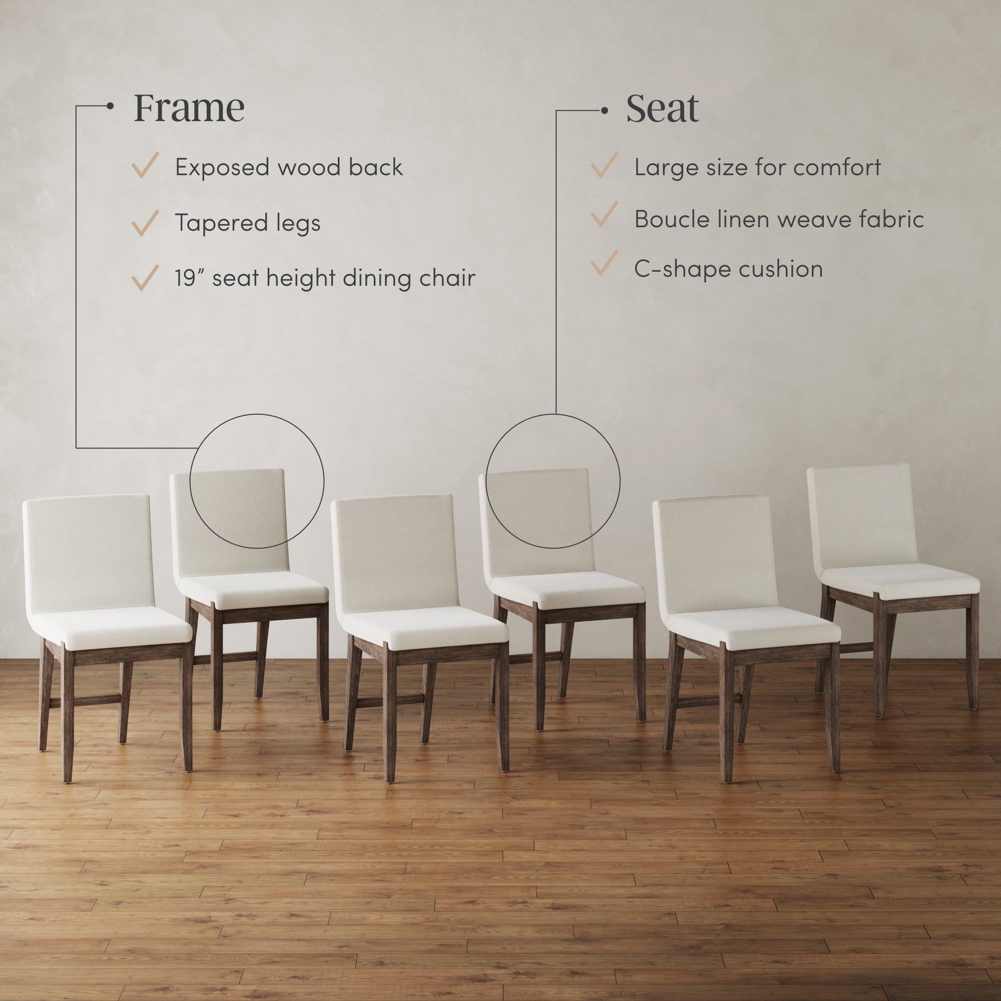 Introducing Gracie – the perfect blend of comfort and style! This set of 6 dining chairs features an exposed wood back, a large C-shape cushion for firm support, and tapered legs for a sleek look. Extra comfy and built to last, Gracie is ready to elevate your dining experience!