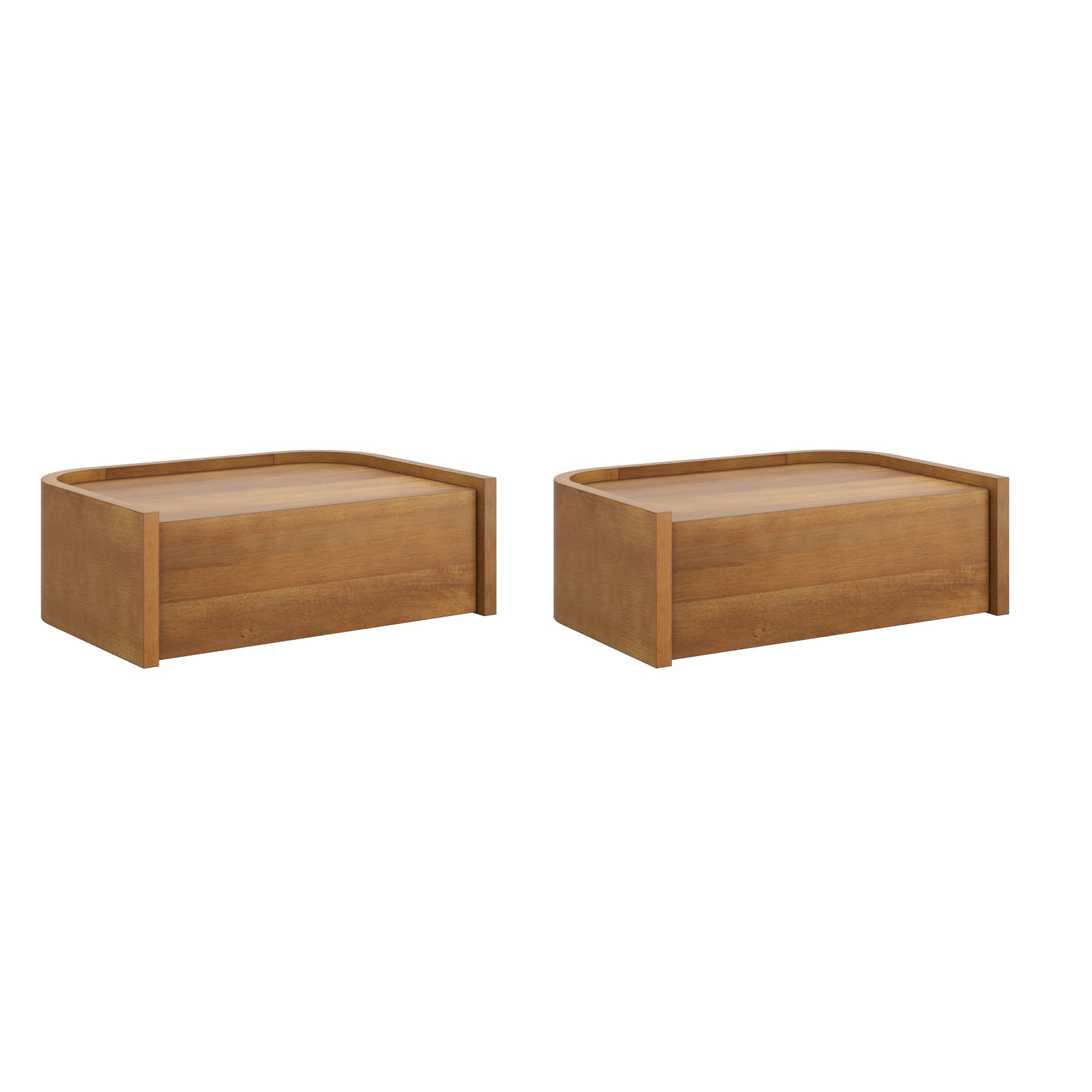 Floating 1-Drawer Rounded Nightstand Light Brown (Set of 2)