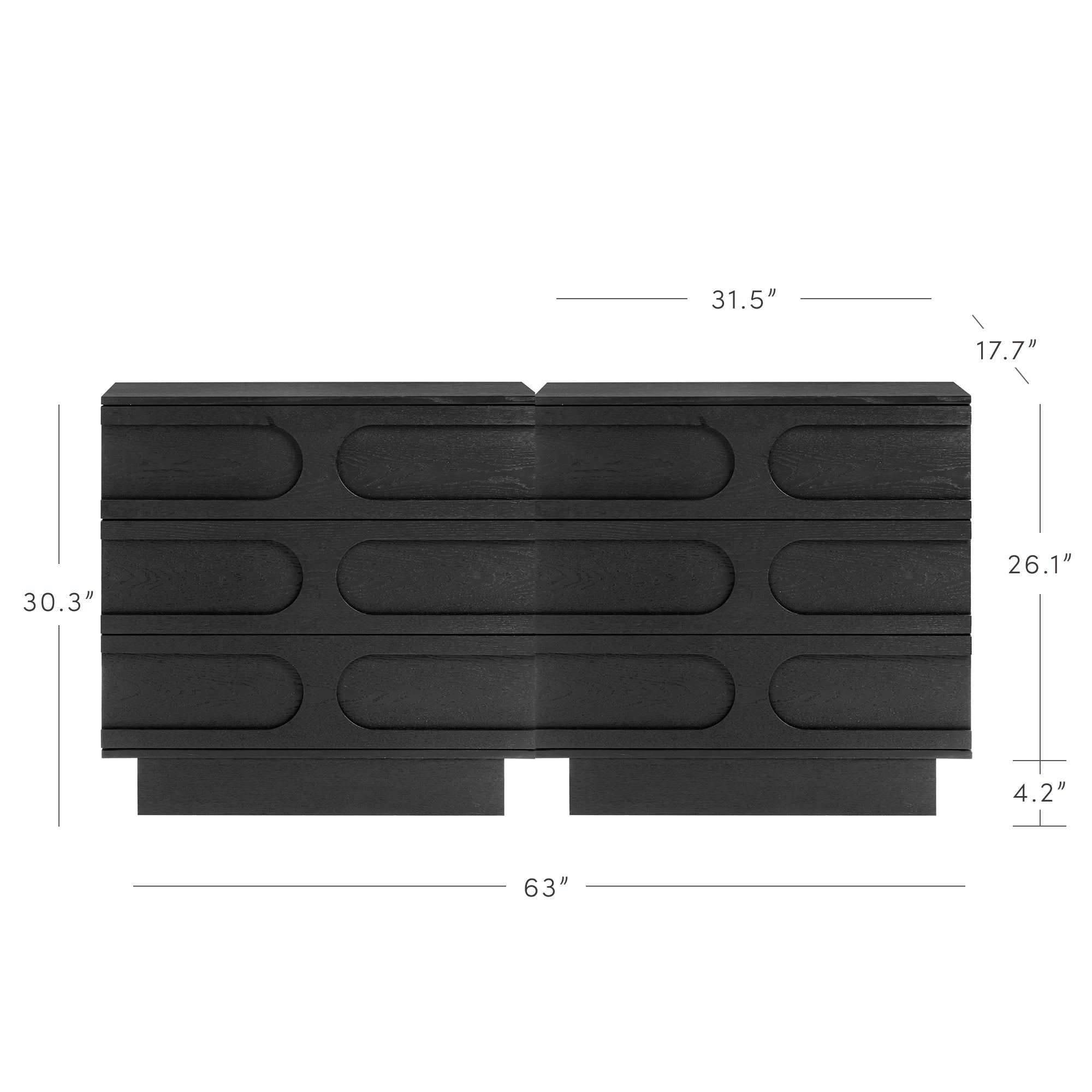 Mid-Century 3-Drawer Arched Dresser Black Oak (Set of 2)