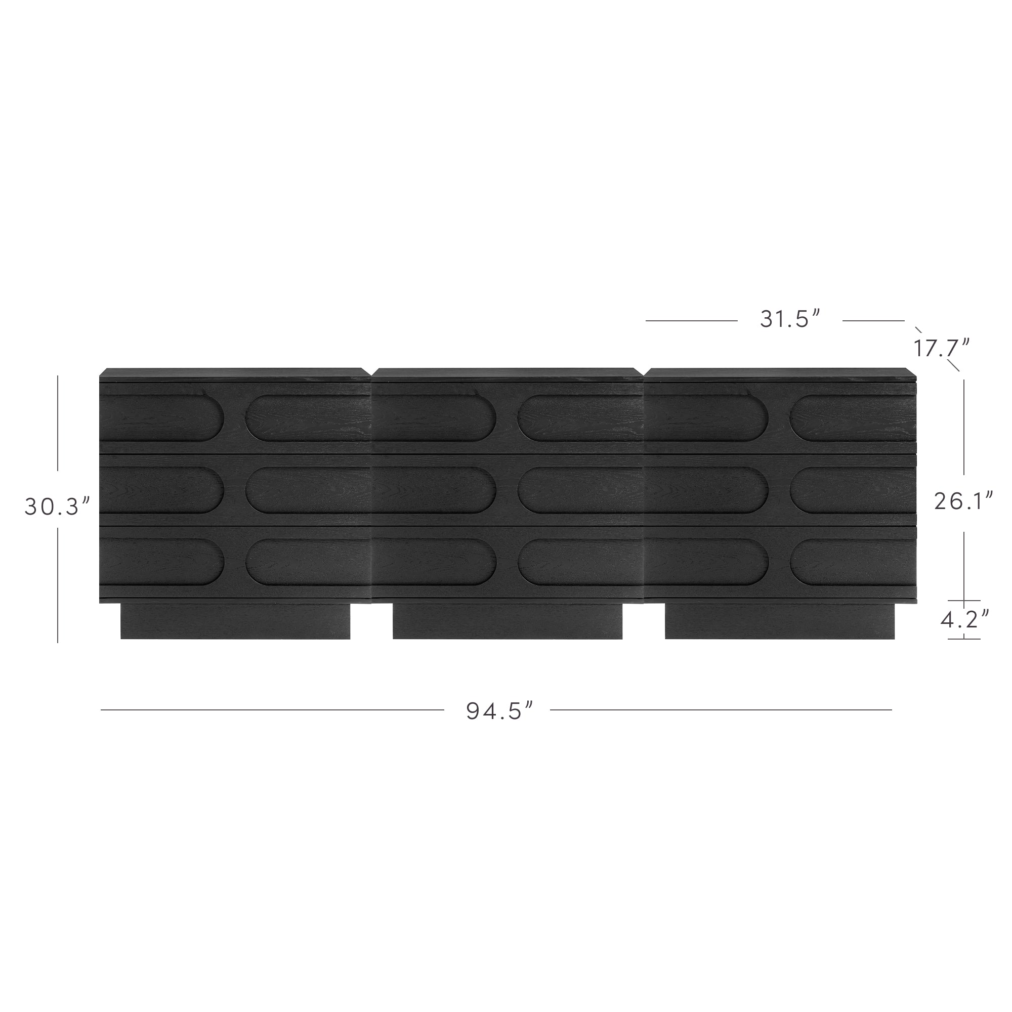 Mid-Century 3-Drawer Arched Dresser Black Oak (Set of 3)
