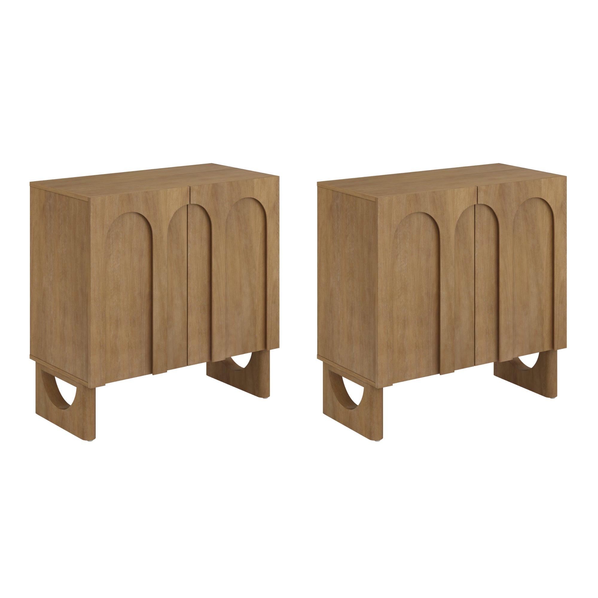 Mid Century Modern Credenza Console Cabinet Light Brown (Set of 2)