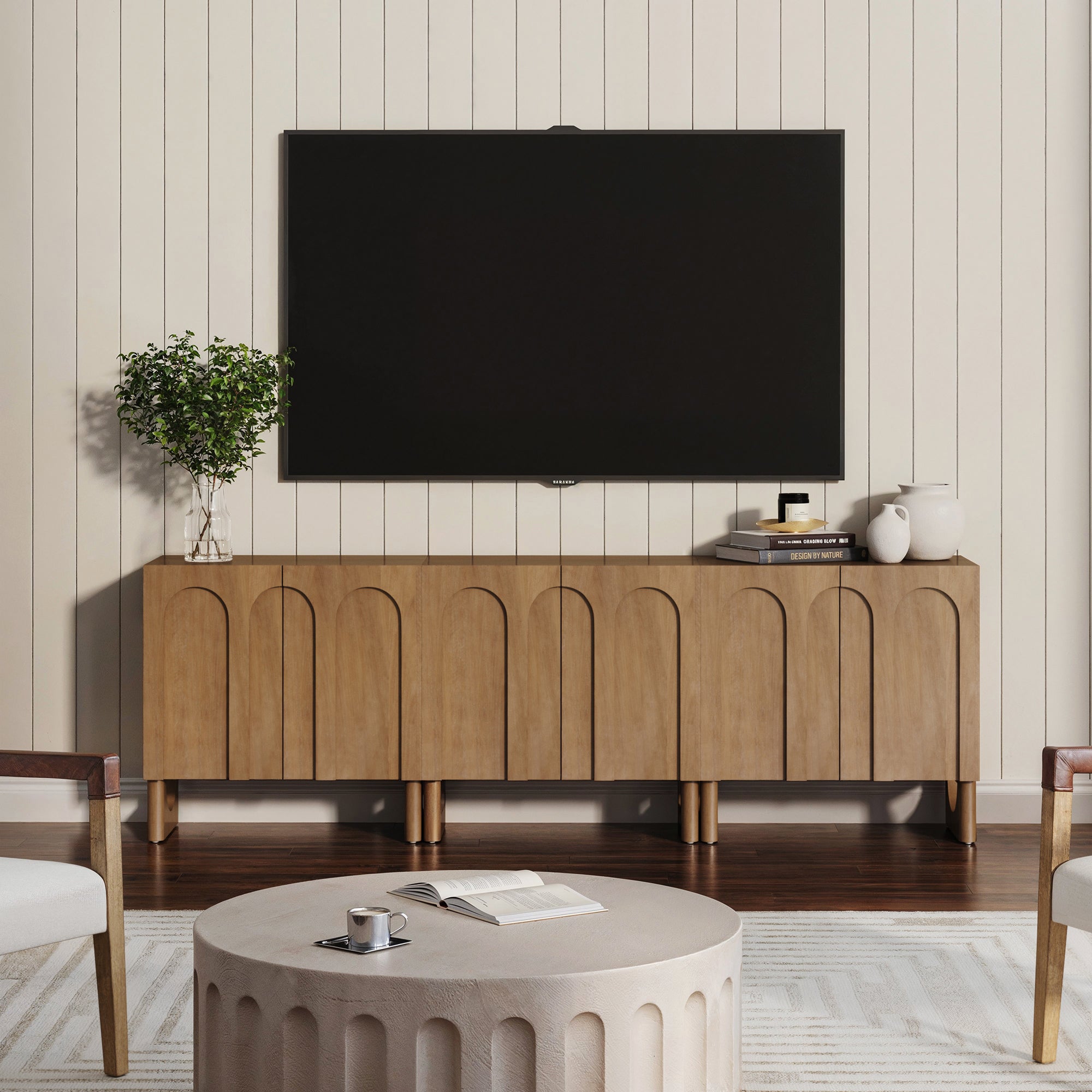 Mid Century Modern Credenza Console Cabinet Light Brown (Set of 3)