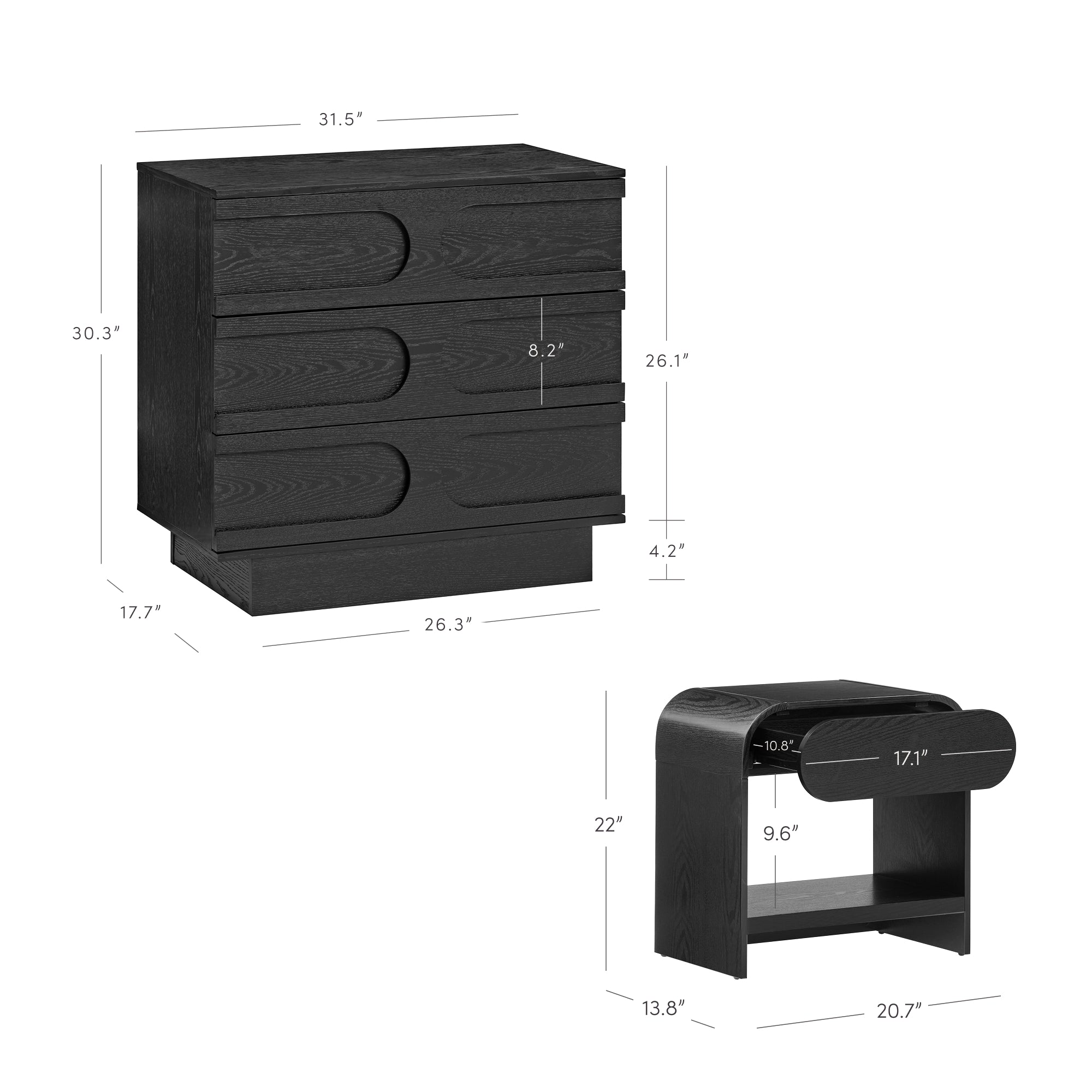 - Rounded drawer front