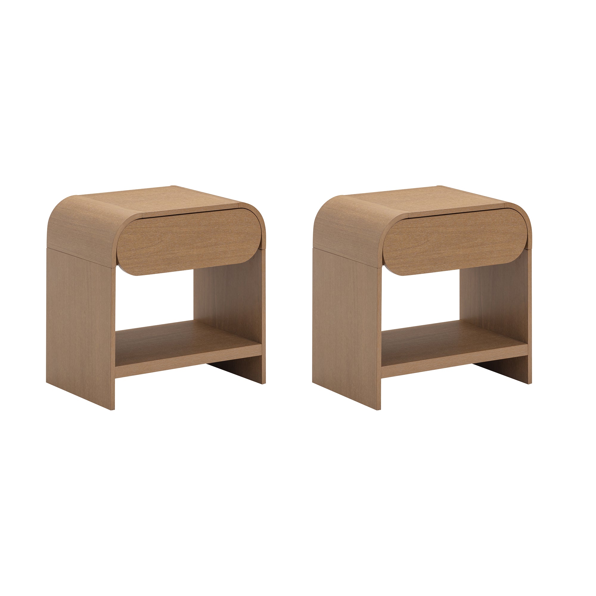 Mid-Century Wood Arched Nightstands Warm Oak (Set of 2)