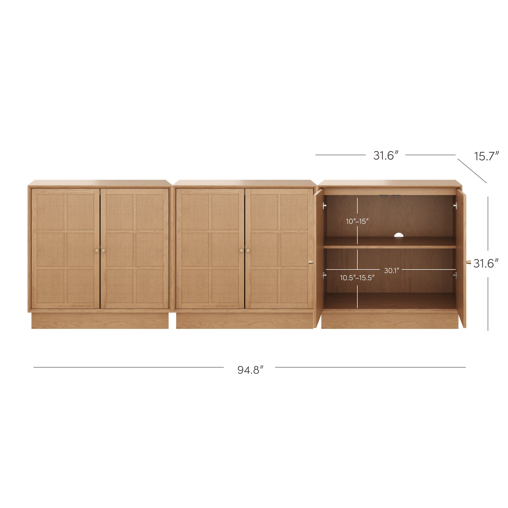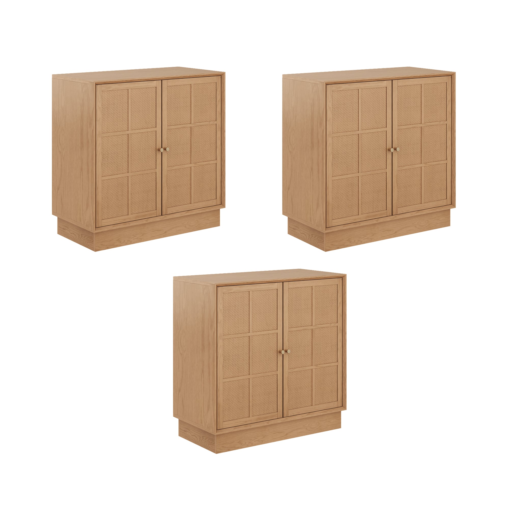 Modern Coastal Rattan Wood Sideboard Storage Cabinet Raw Oak (Set of 3)