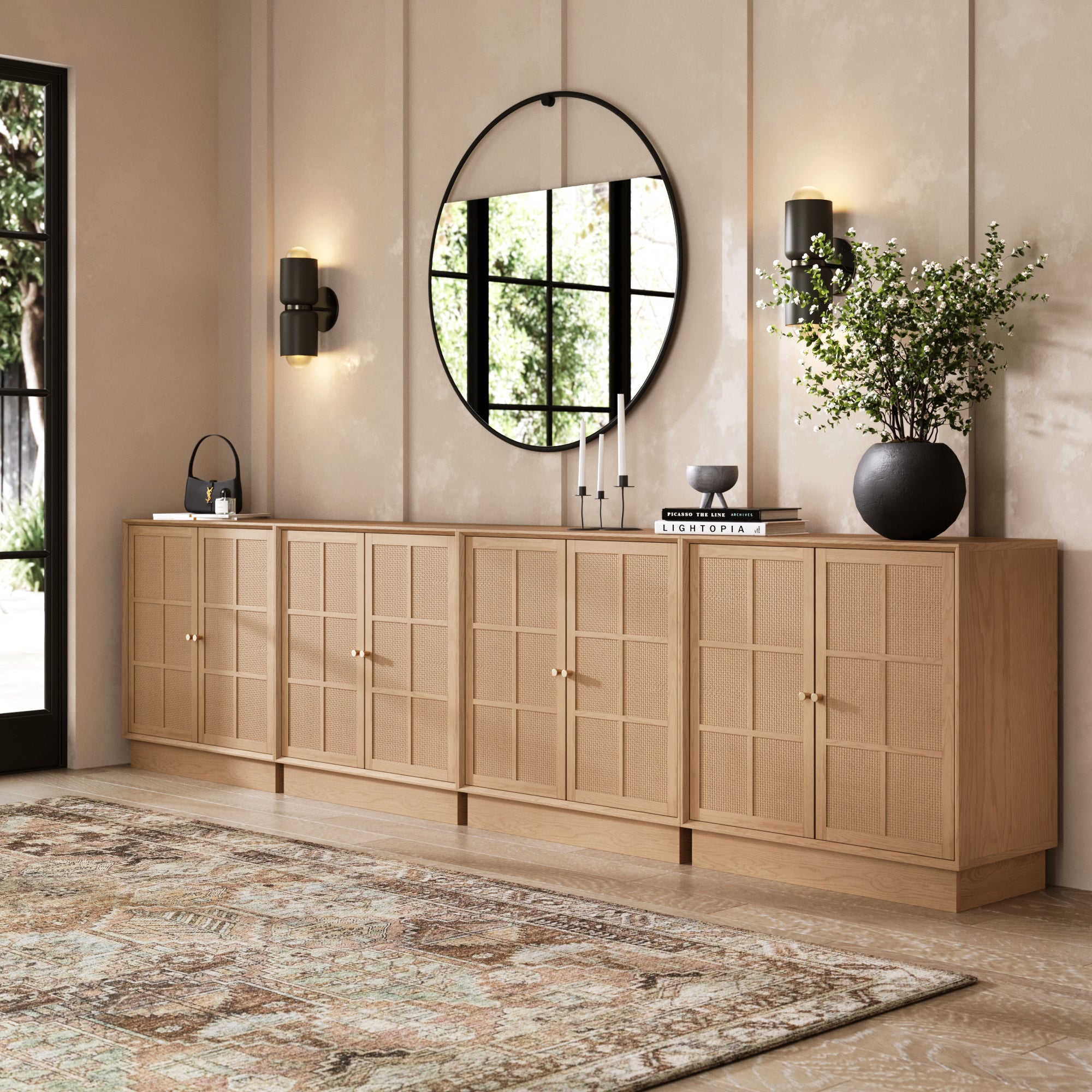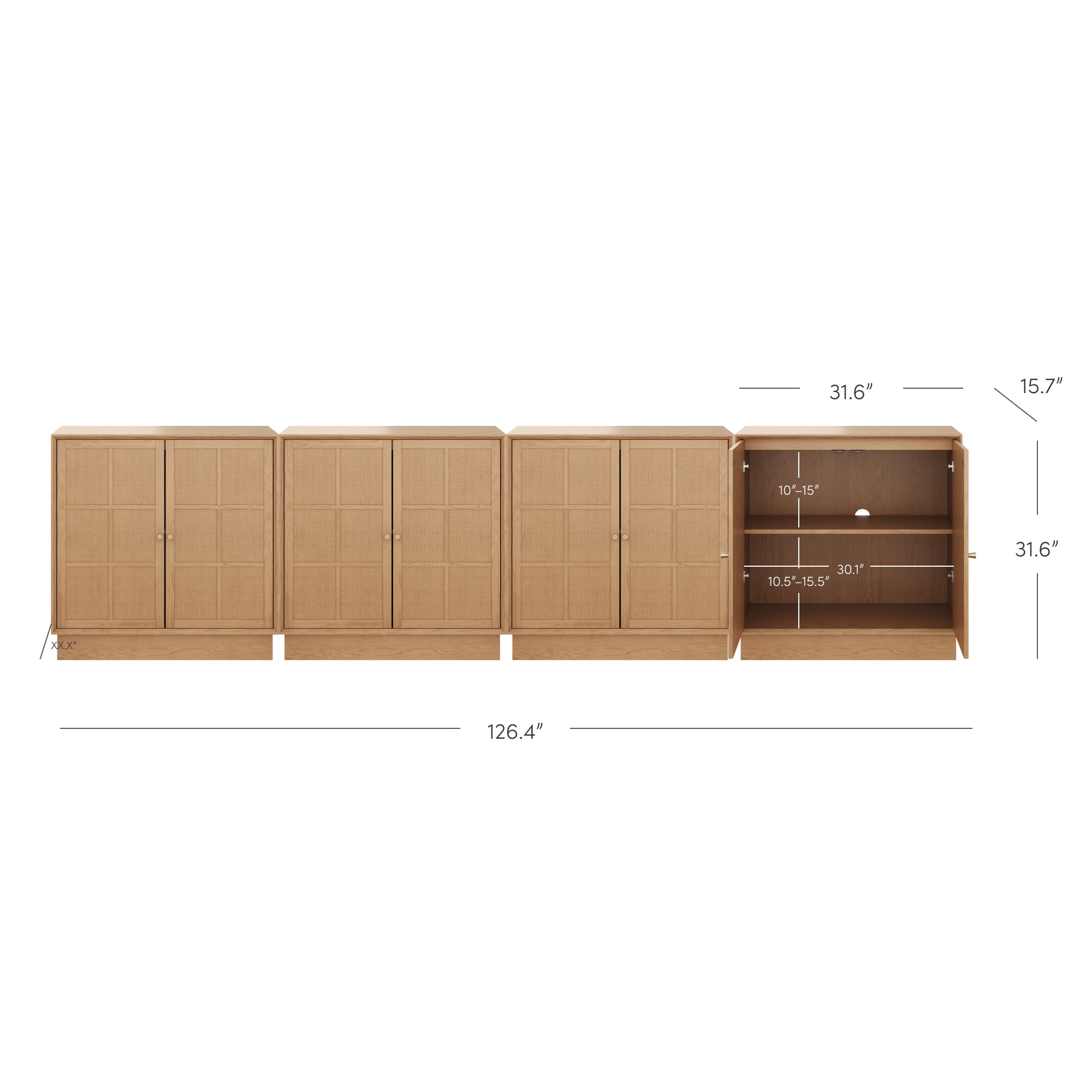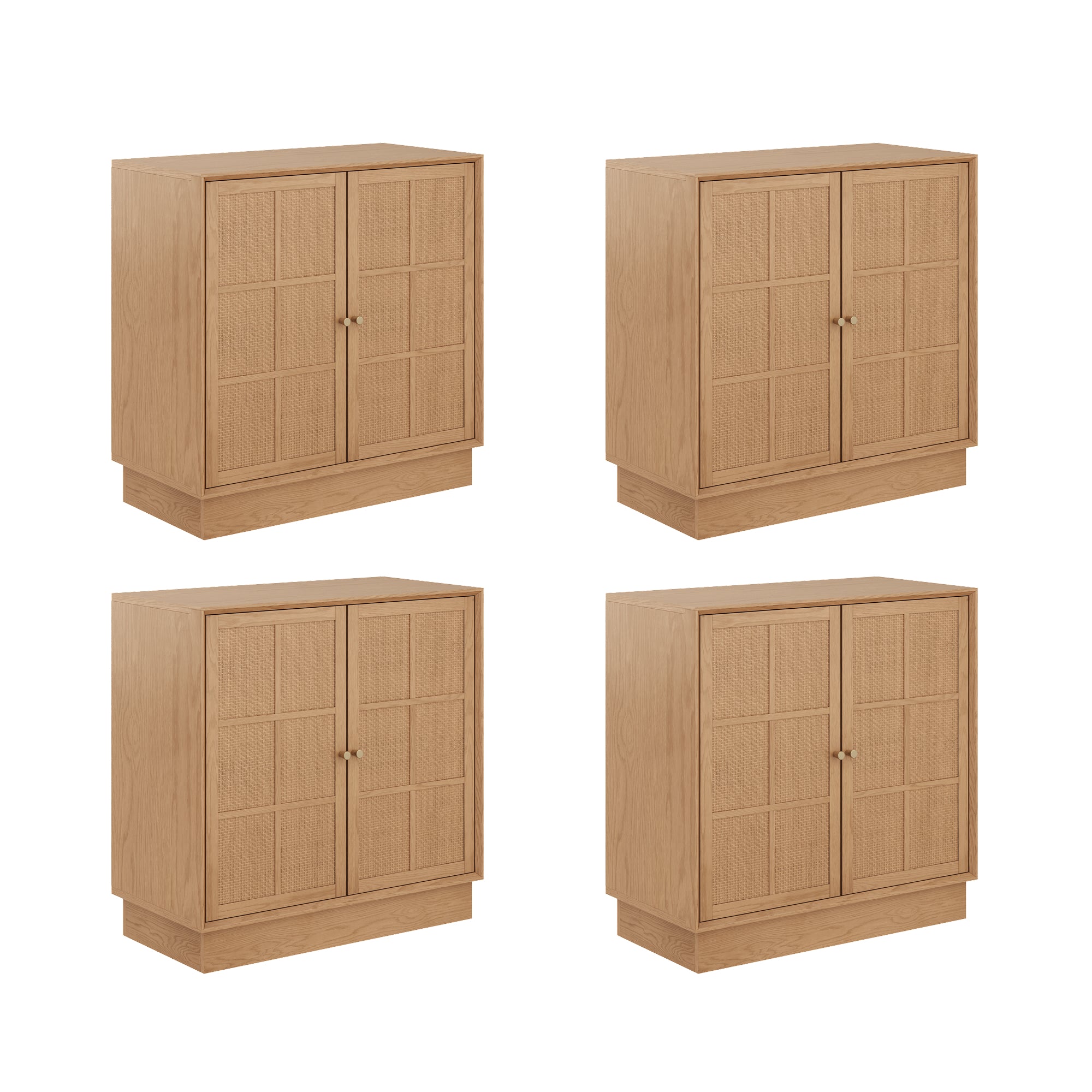 Modern Coastal Rattan Wood Sideboard Storage Cabinet Raw Oak (Set of 4)