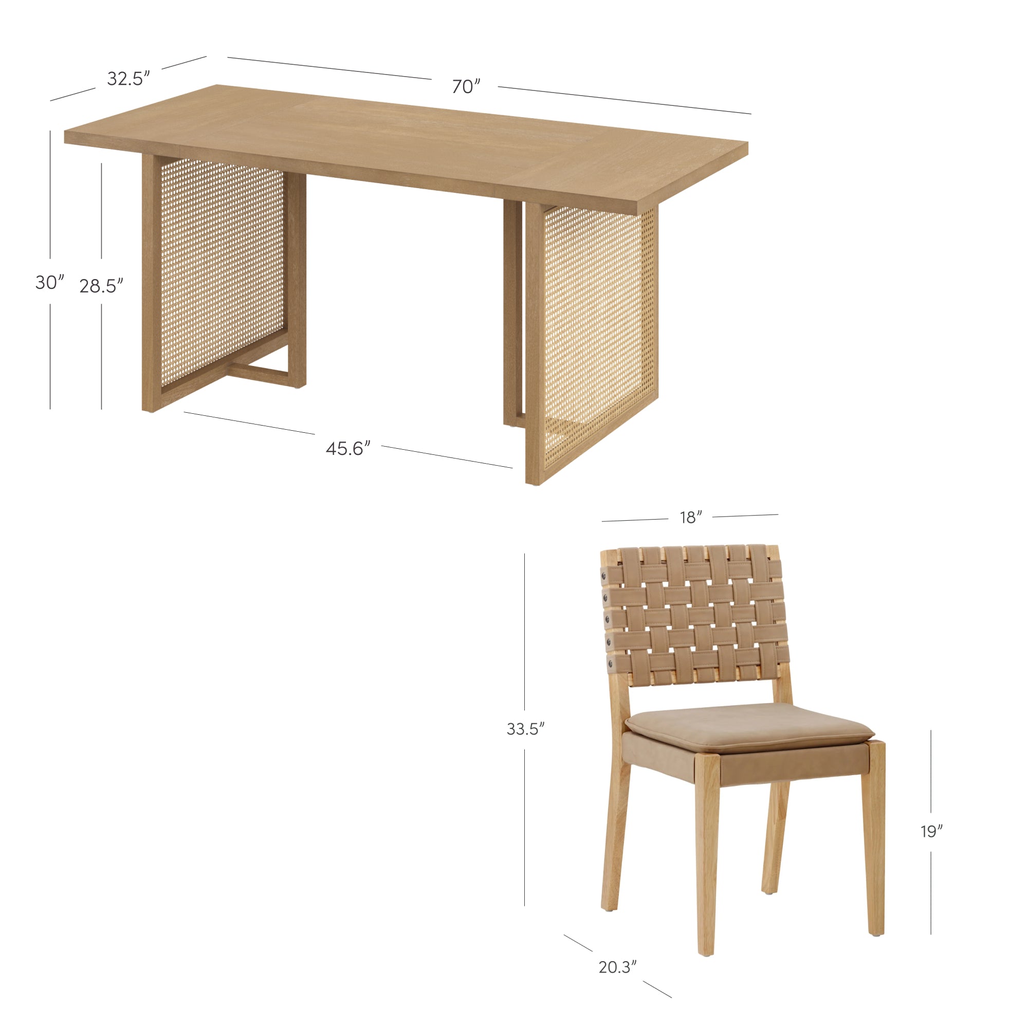 Meet the Willow Dining Table—where style meets everyday living. Crafted with a sturdy solid wood base, this table comfortably seats 6 and showcases unique natural variations in color and texture. Paired with 4 matching chairs featuring padded saddle seats and hand-woven faux leather backs, each piece is designed for both comfort and durability. Willow makes every meal feel like a cozy, well-styled gathering