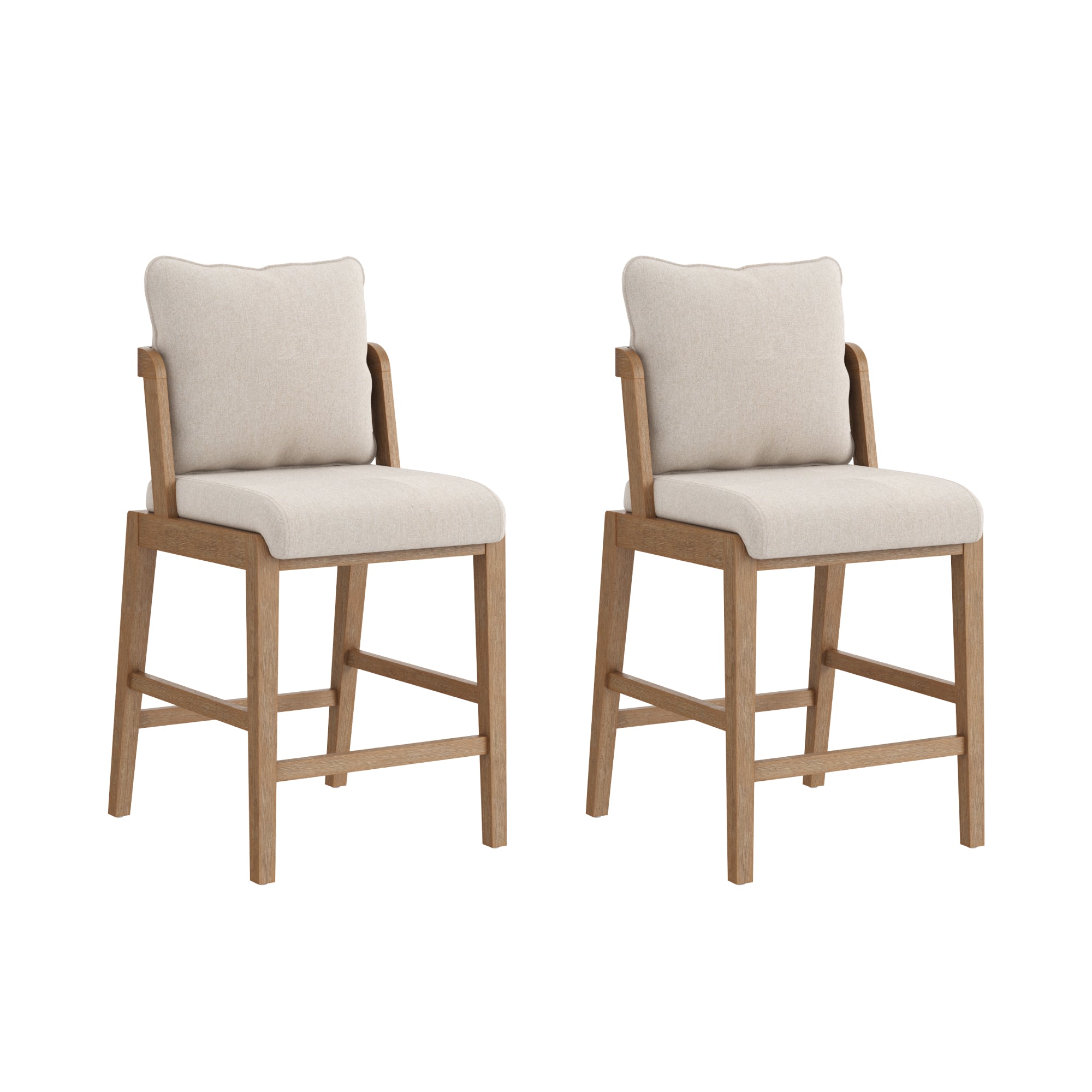 Take your seating game to new heights with the Chuck Bar Stools. At a 24.8" seat height, they're the perfect perch for kitchen counters and casual dining. A plush backrest pillow secured with toggles and a thick upholstered seat cushion deliver comfort that lasts, while the bent wood backrest and wire-brushed wood finish bring warmth and craftsmanship to your space. Built with a sturdy solid wood frame, these stools are made to hold up through every toast, snack, and late-night chat. Each stool is one-of-a-kind, with natural variations in color and texture that highlight the character of real wood. And don't worry‚ Chuck's got your back (literally).