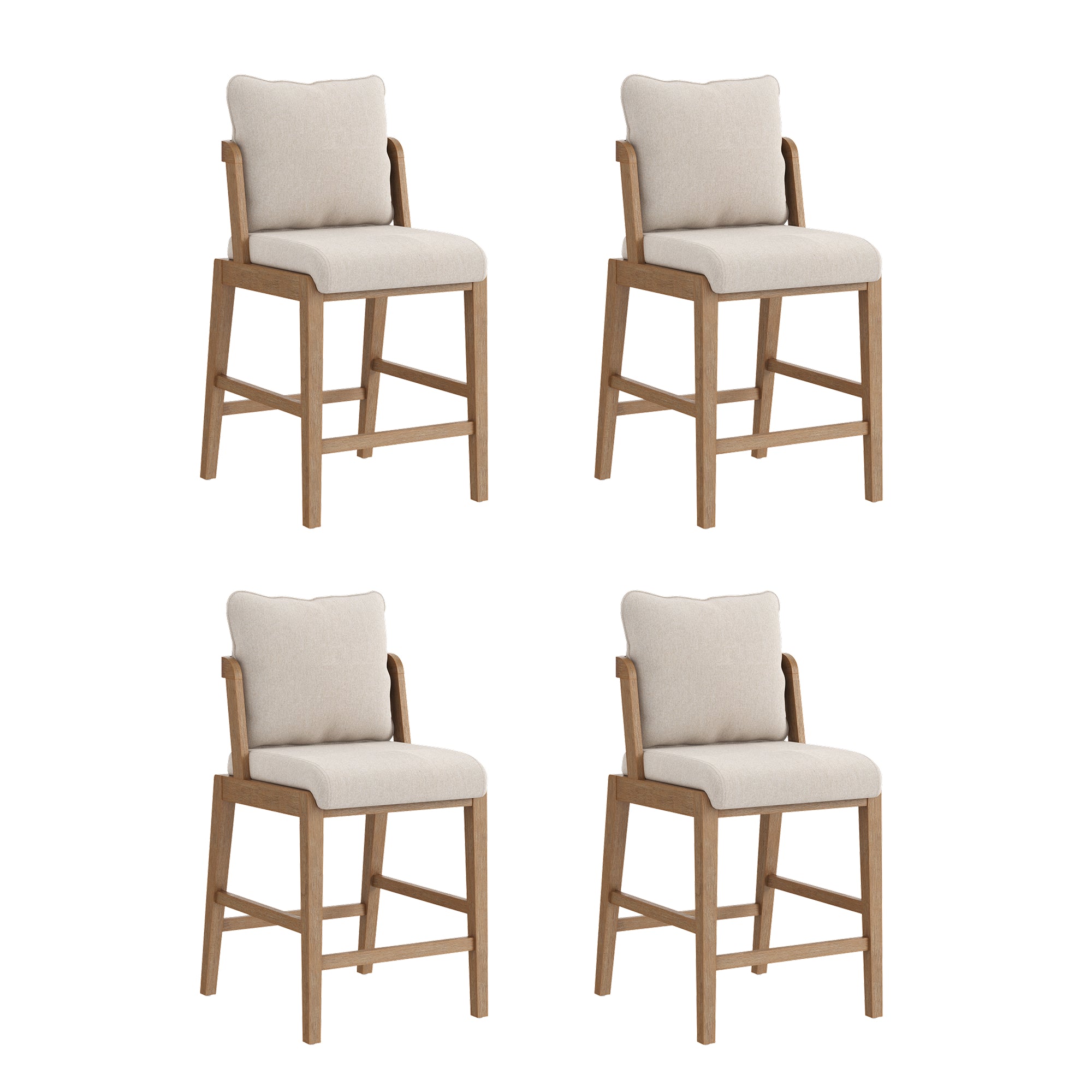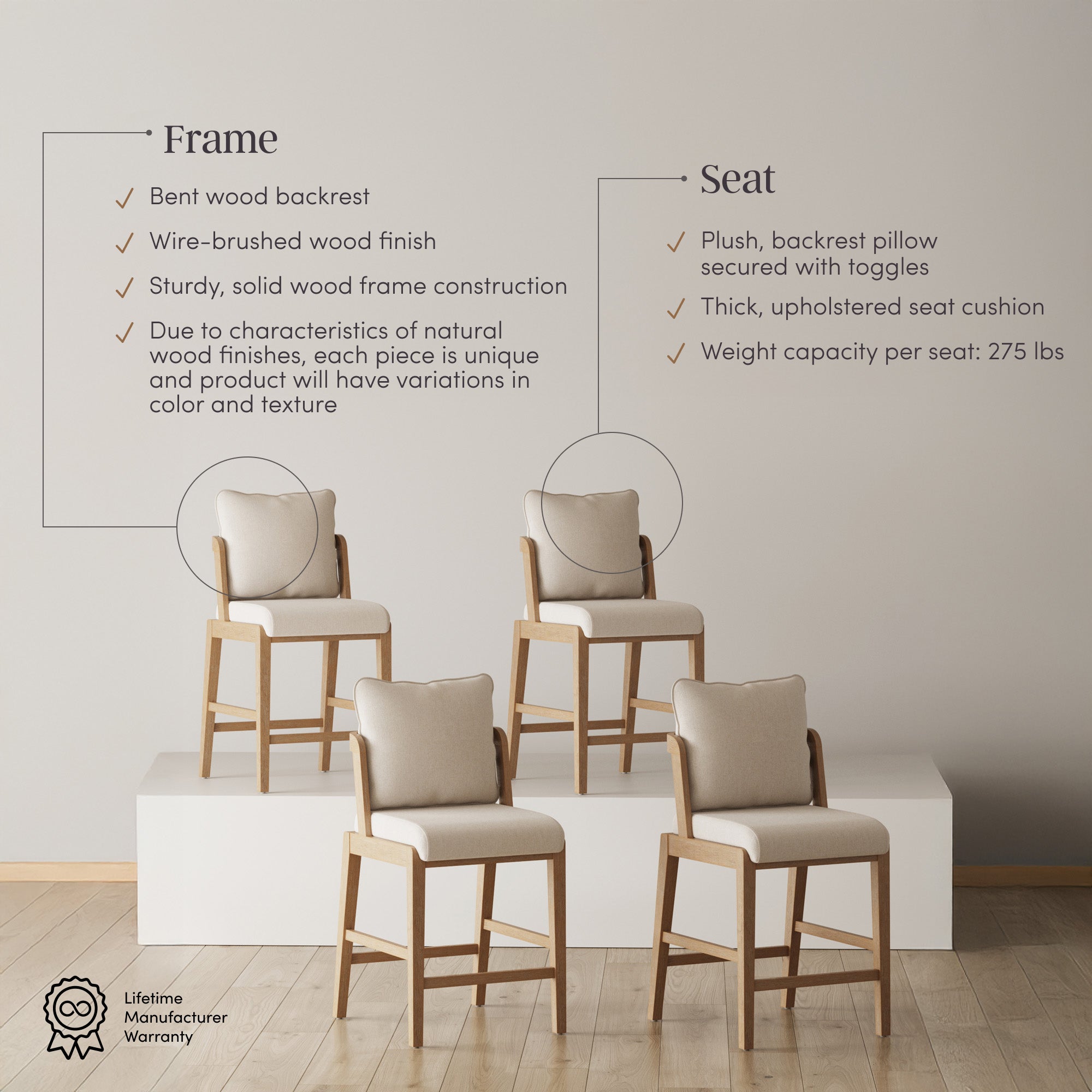 Take your seating game to new heights with the Chuck Bar Stools. At a 24.8" seat height, they're the perfect perch for kitchen counters and casual dining. A plush backrest pillow secured with toggles and a thick upholstered seat cushion deliver comfort that lasts, while the bent wood backrest and wire-brushed wood finish bring warmth and craftsmanship to your space. Built with a sturdy solid wood frame, these stools are made to hold up through every toast, snack, and late-night chat. Each stool is one-of-a-kind, with natural variations in color and texture that highlight the character of real wood. And don't worry‚ Chuck's got your back (literally).