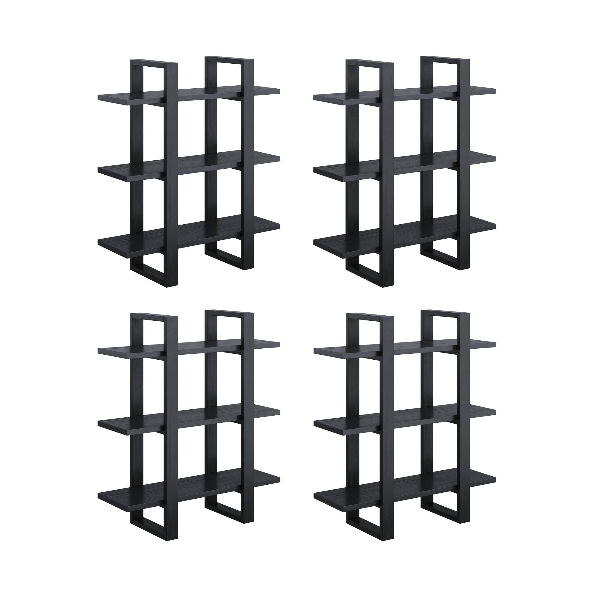 Solid Wood Modular Floating Wall Shelf Black Oak (Set of 4)