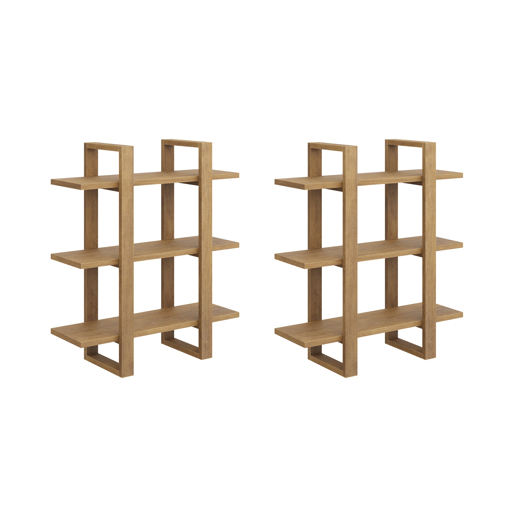 Solid Wood Modular Floating Wall Shelf Light Brown (Set of 2)