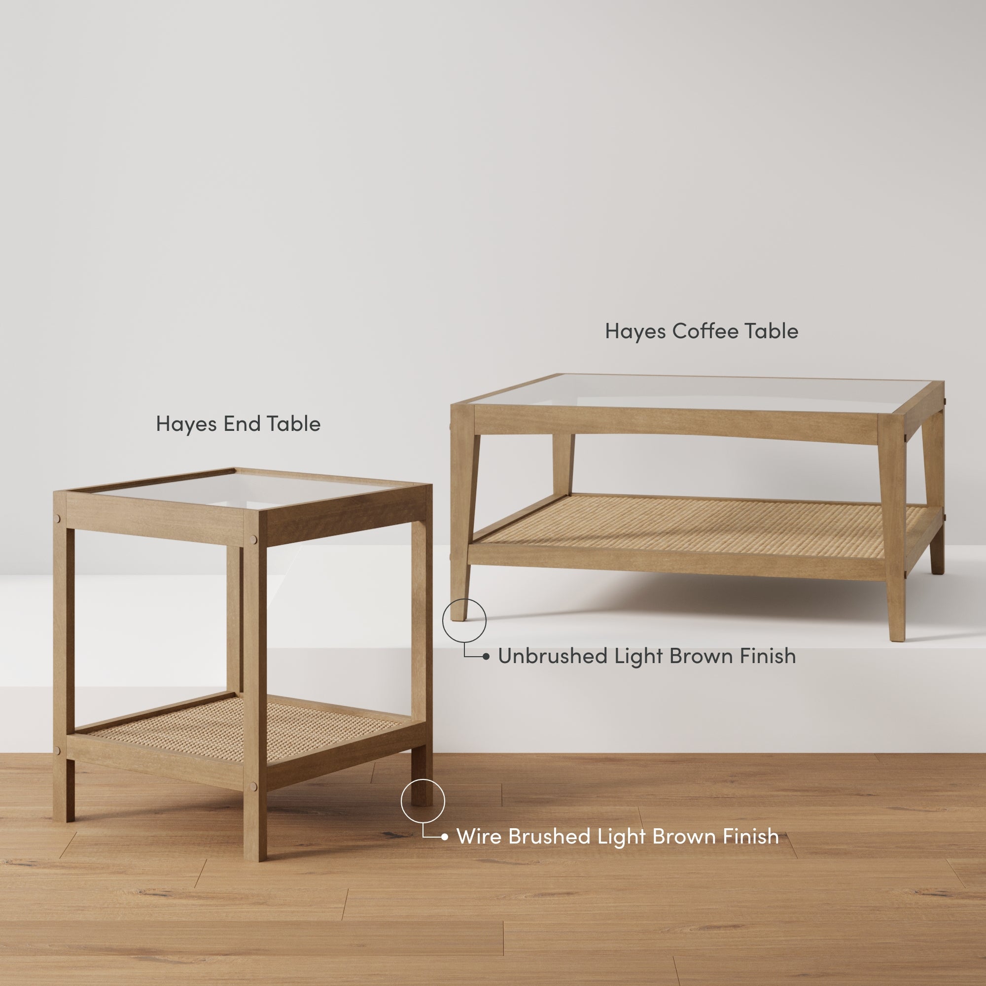 Meet the Hayes Coffee Table‚ where boho charm meets effortless elegance. With its solid wood frame, rattan inlay shelf, and sleek tempered glass top, It's the perfect blend of natural beauty and modern design. The tapered legs add a touch of sophistication, while the unique wood grain means no two tables are exactly alike. Whether you're styling it with your favorite coffee table books or cozying up with a cup of tea, Hayes is here to make your space feel warm, inviting, and oh-so-stylish.