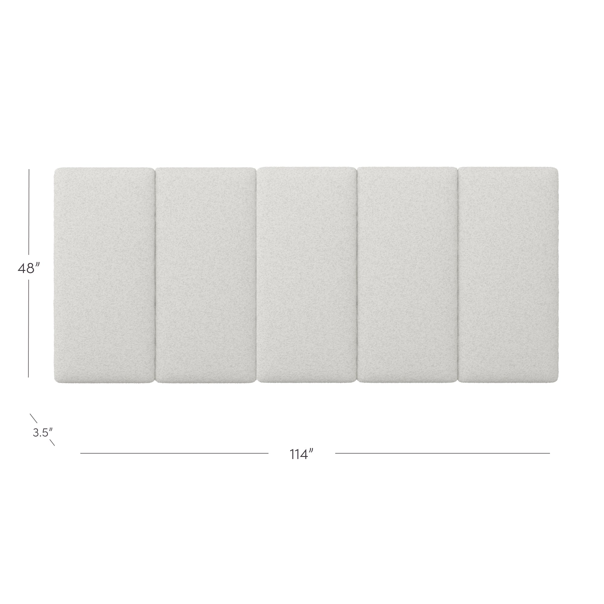 Elevate your bedroom with the Marissa Headboard, featuring wall-mounted panels upholstered in textured boucle for a clean, mid-century modern look. Designed to mount at any height—including directly on the floor—Marissa offers flexible styling that fits your space. Made for a queen bed, its extra-wide panels extend well beyond each side for a bold, oversized look. Holstered panels make setup simple for a sleek, tailored upgrade to your bedroom.