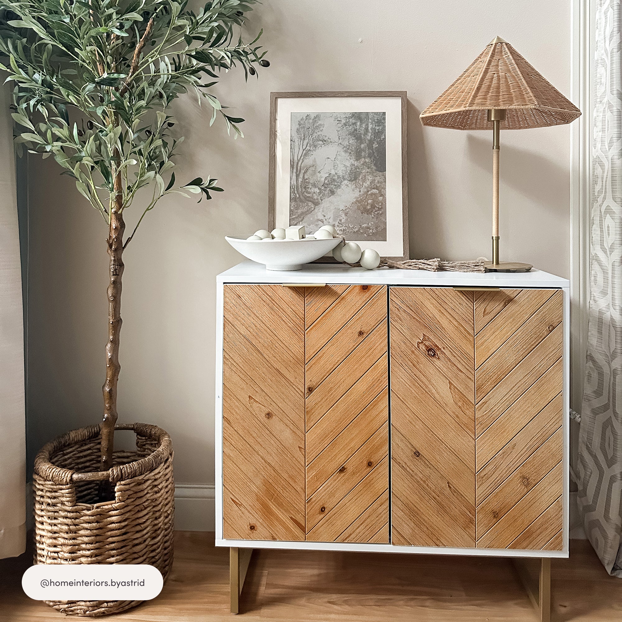 Meet Enloe, a versatile storage solution with style! This cabinet features adjustable doors and shelves, plus a durable base with leveling glides for stability. Crafted from wood veneer, each piece is unique, with variations in color and texture. The top supports up to 90 lbs!