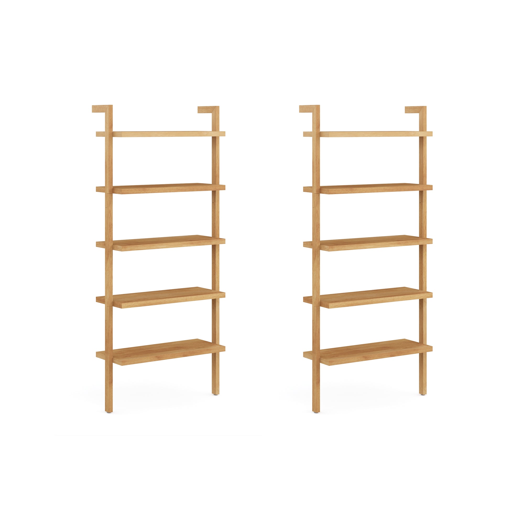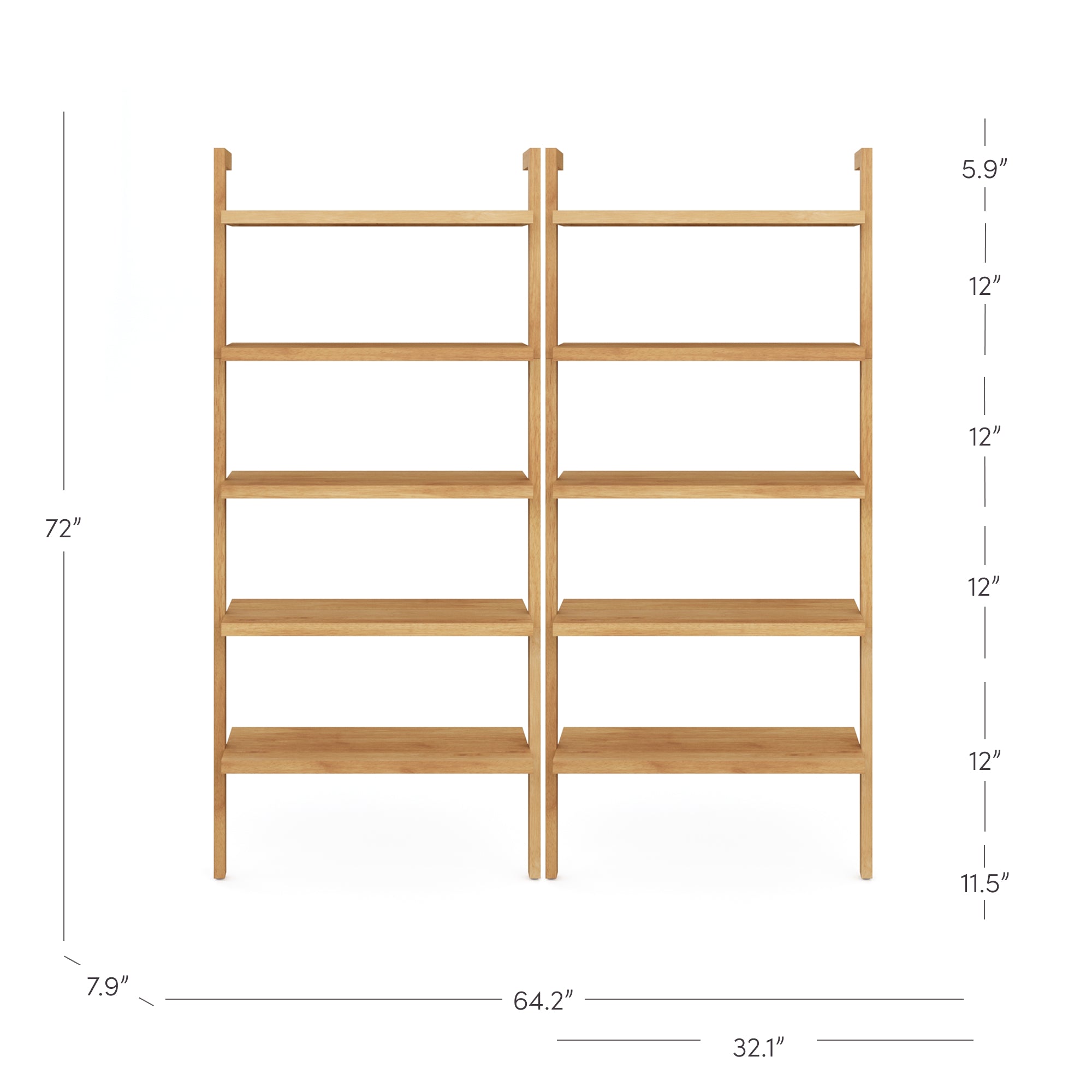 Wood 5-Shelf Ladder Wall Bookshelf Warm Pine (Set of 2)