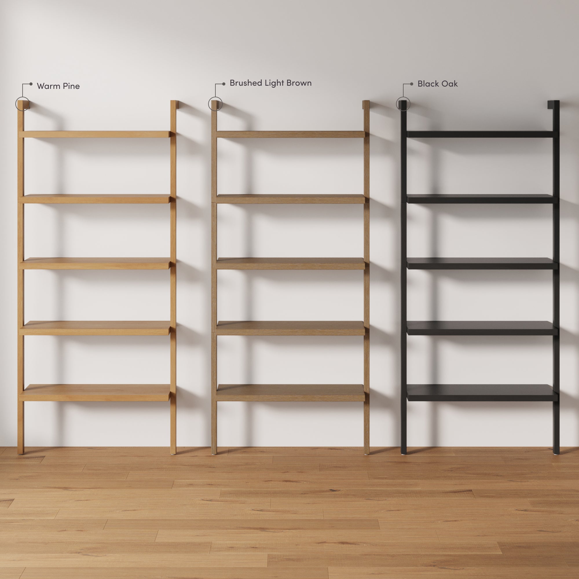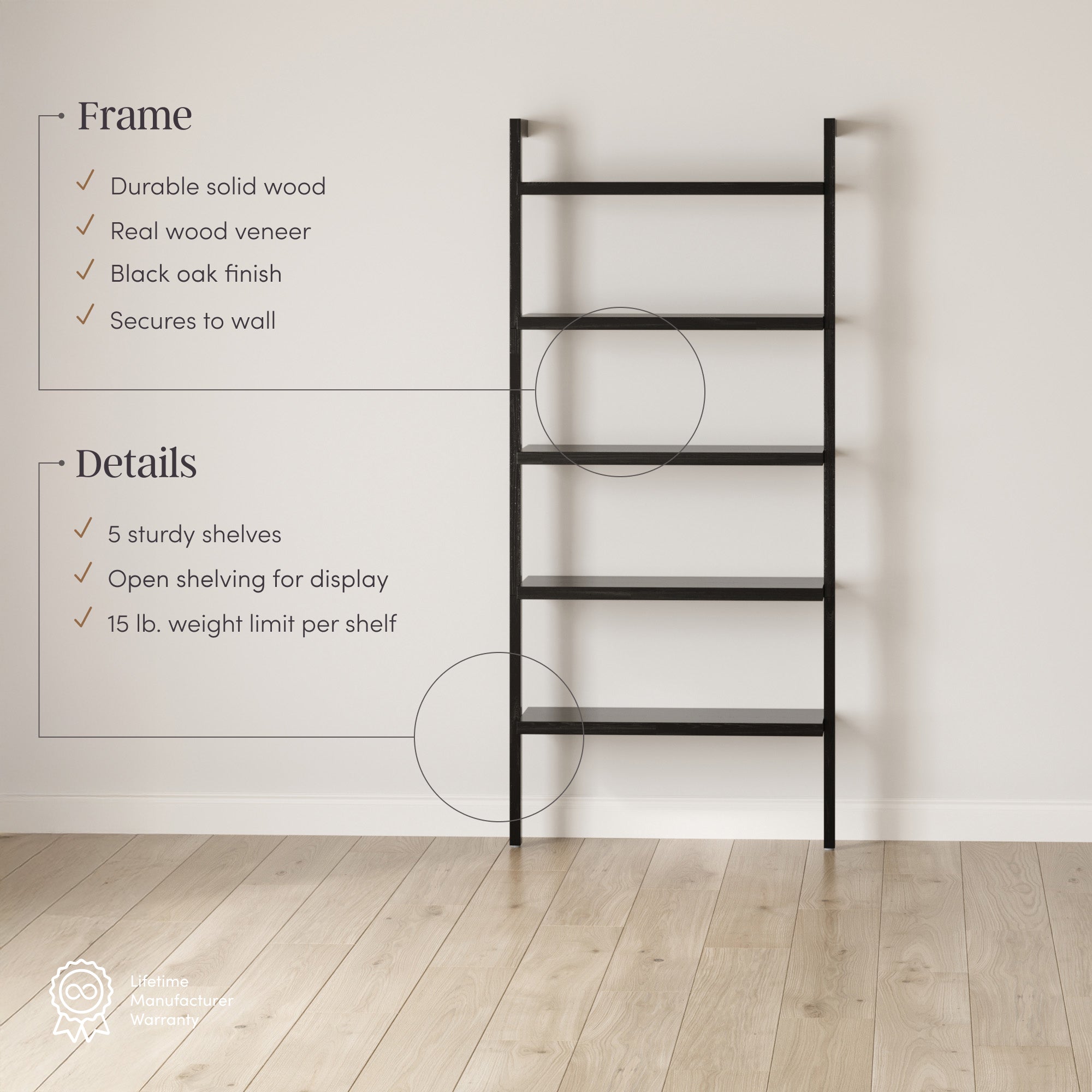 Wood 5 Tier Wall Mounted Bookshelf Black Oak