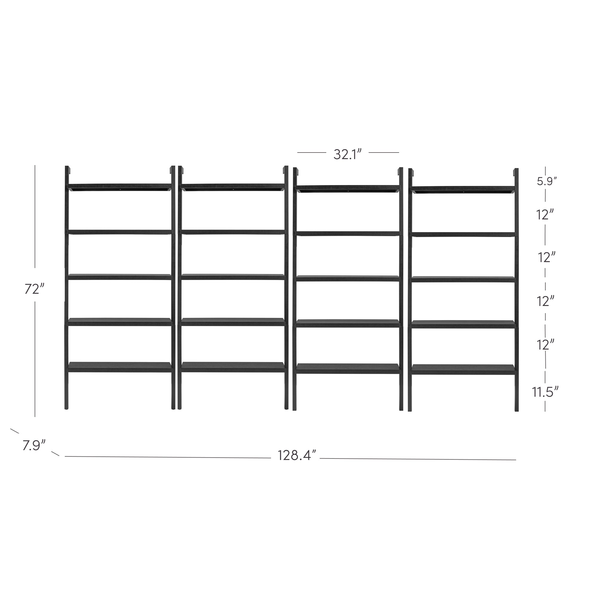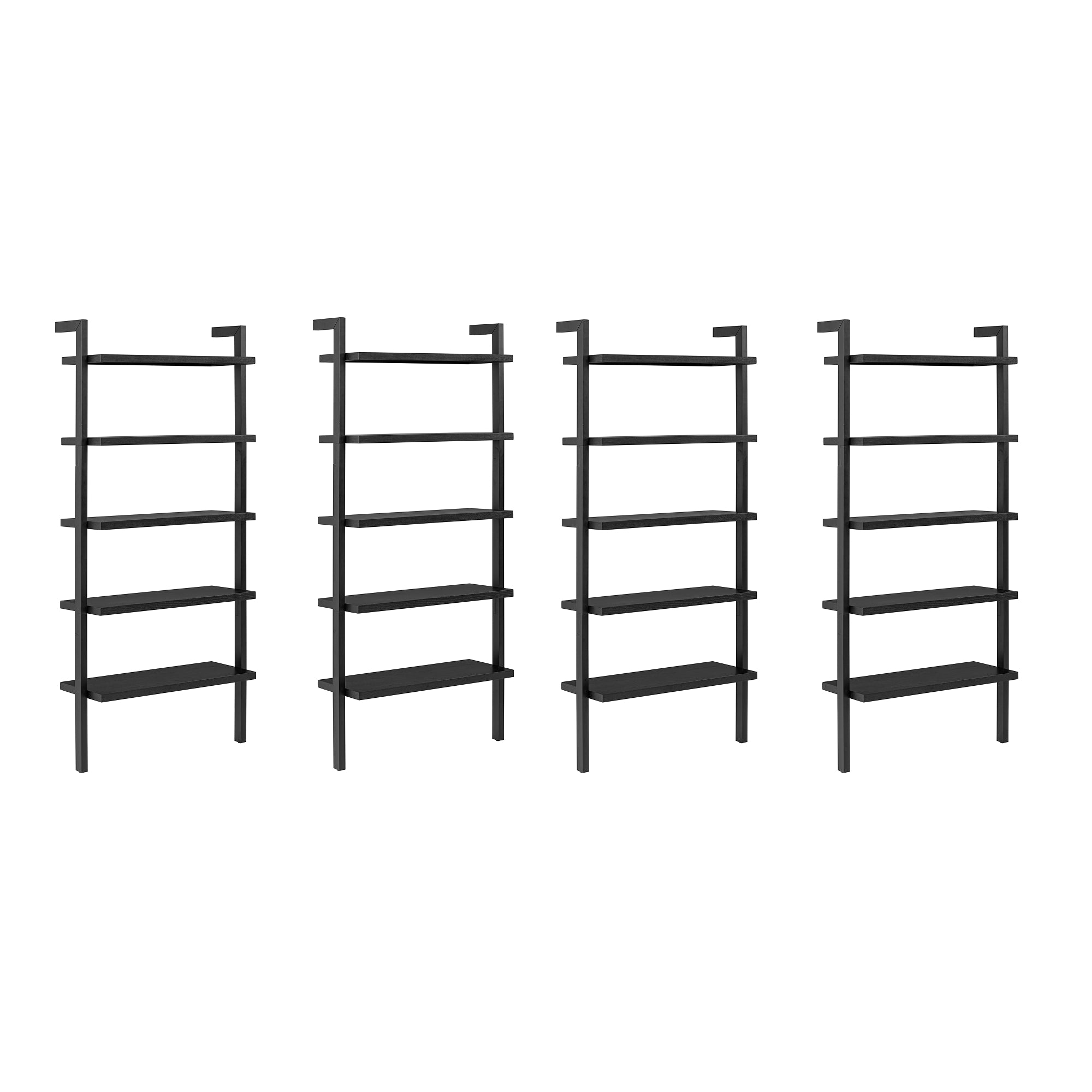 Wood 5 Tier Wall Mounted Bookshelf Black Oak (Set of 4)