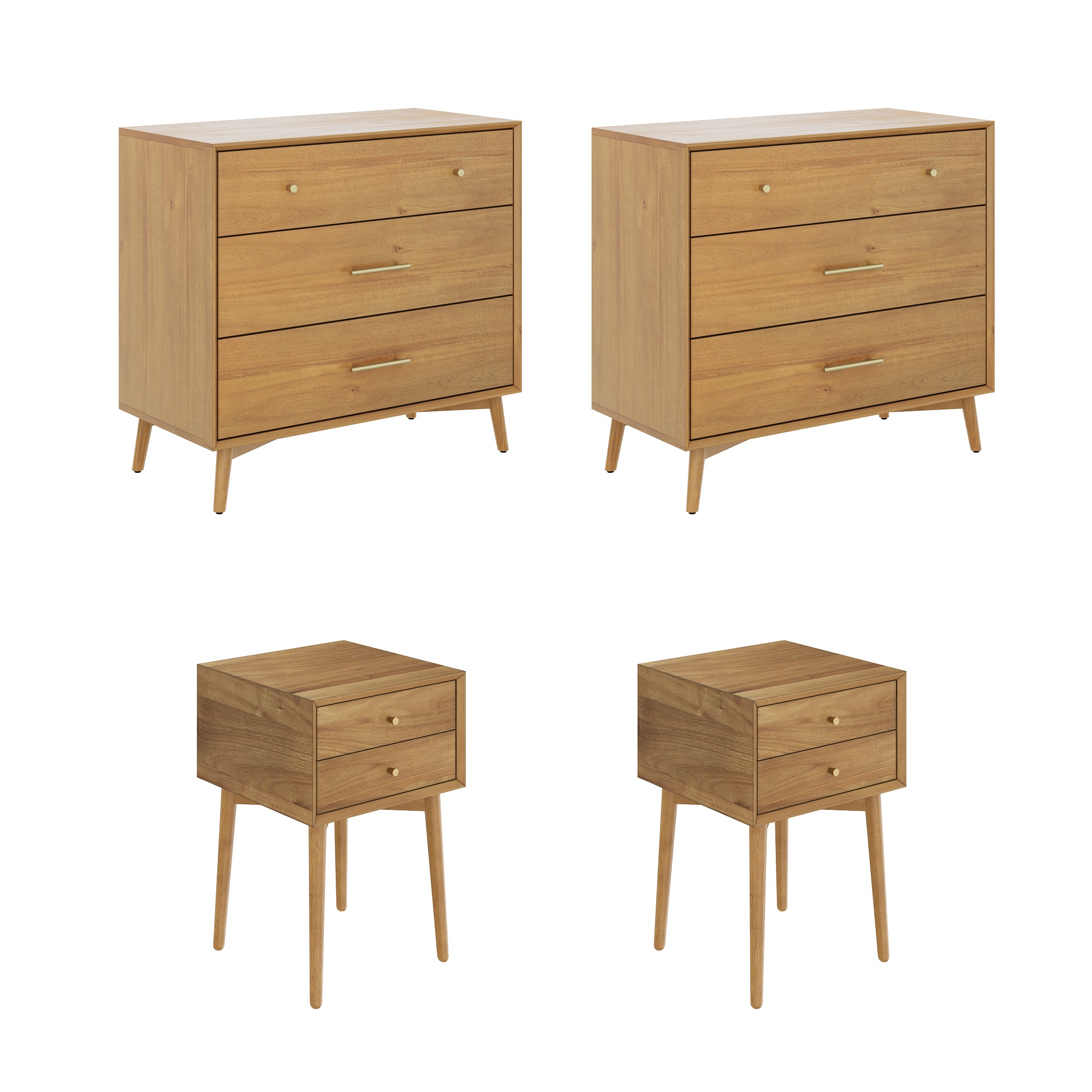 Wood Bedroom Set with 2 Dressers and 2 Nightstands Light Acacia