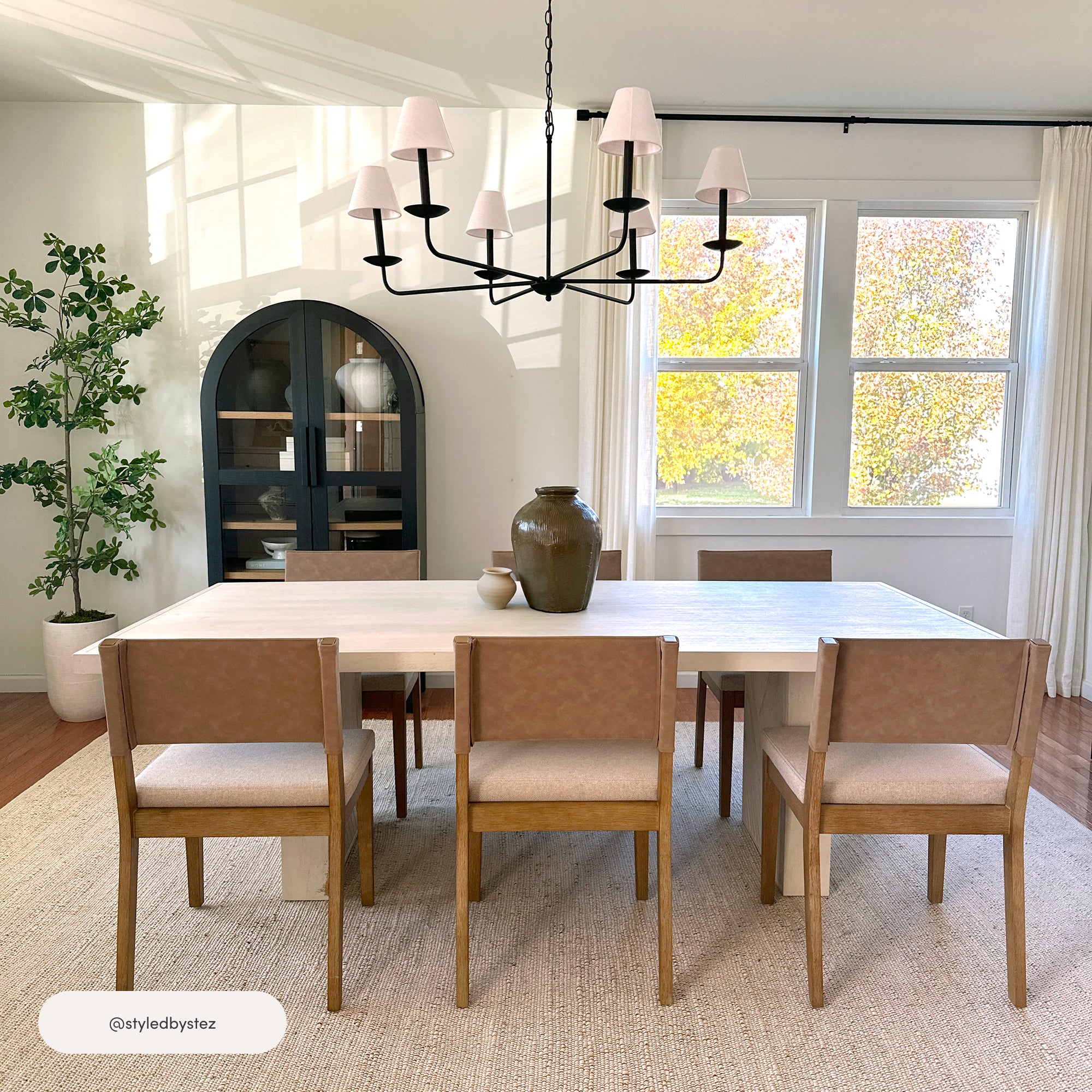 We loved our Linus Bar Stool so much, we had to make a dining chair to match. Our Linus Dining Chair features a thick, durable cushion covered in natural flax fabric, with complimenting rubberwood legs in a light brown finish. It's brushed light brown faux leather back ensures that the shape of the backrest stays intact over many meals. Linus adds comfort and style to dining room or breakfast nook with its clean modern lines and textured fabric. And with an easy 20 minute assembly time, you’ll be enjoying that pizza from your new dining chair in no time!