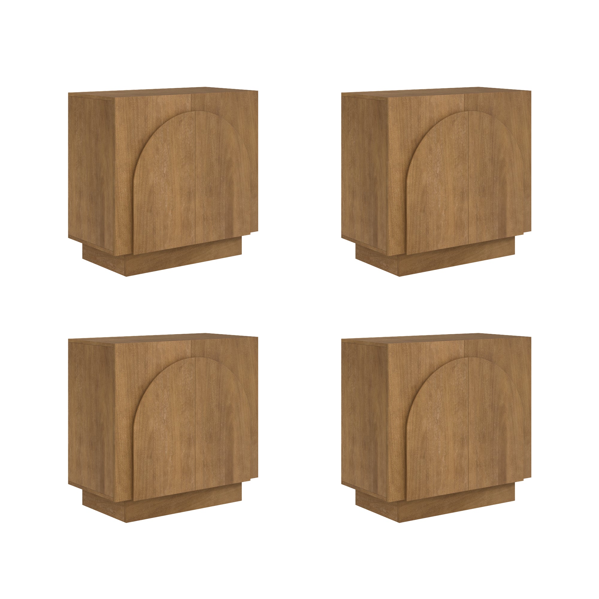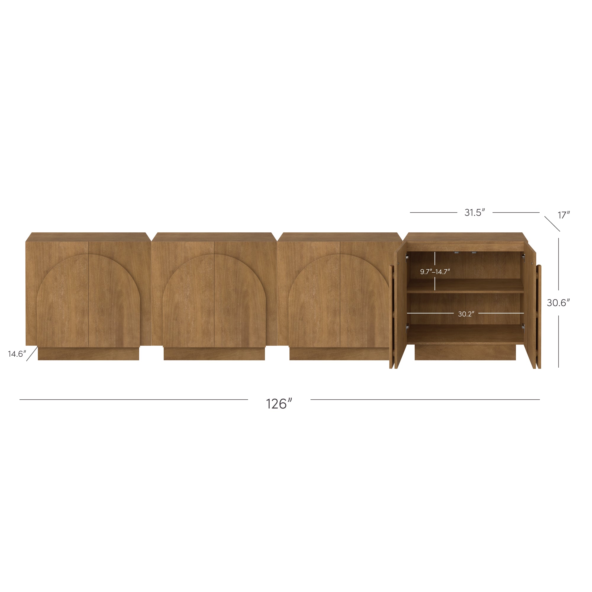 Large Arched TV Console Credenza Light Brown (Set of 4)