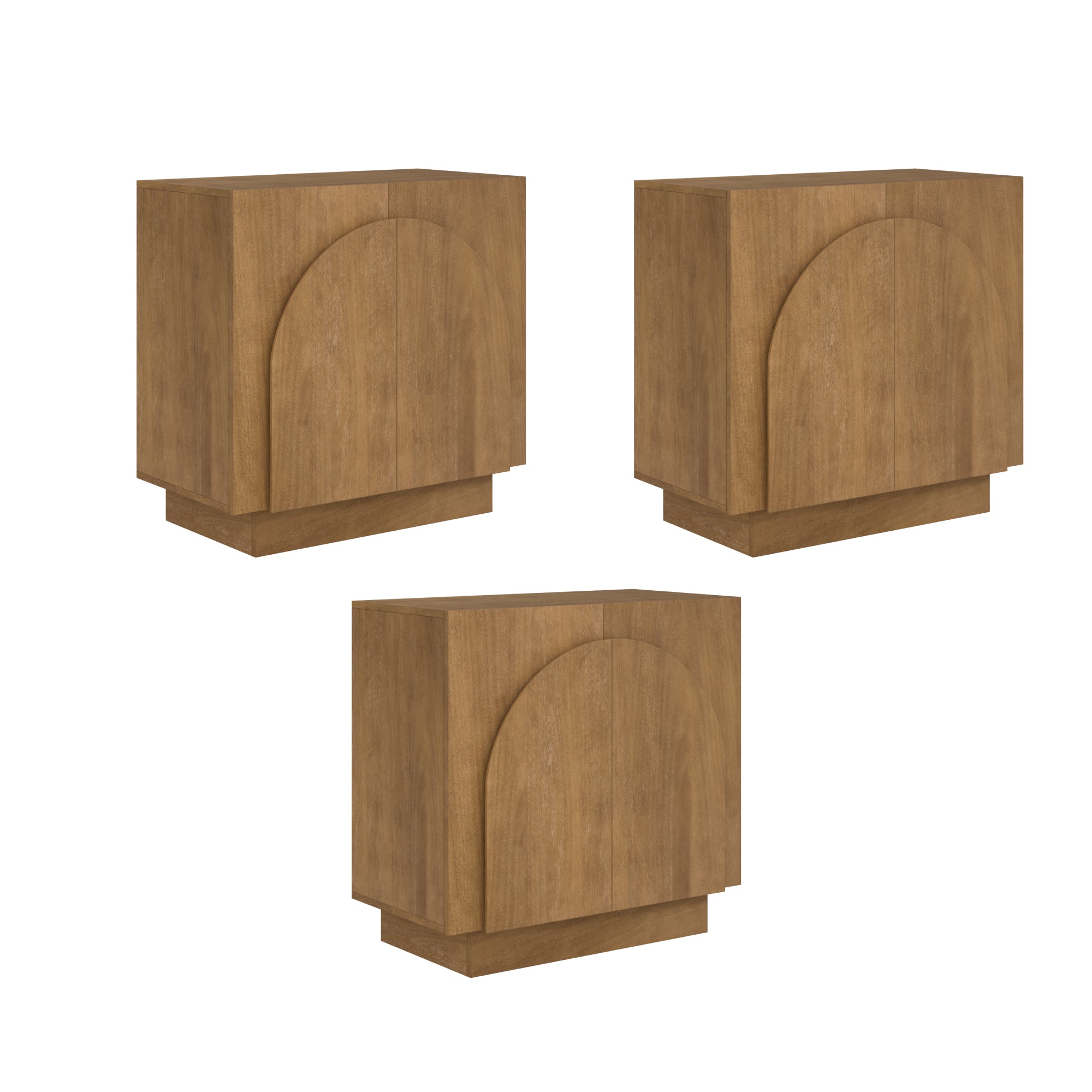 Wood Arched Kitchen Cabinet Credenza Light Brown (Set of 3)