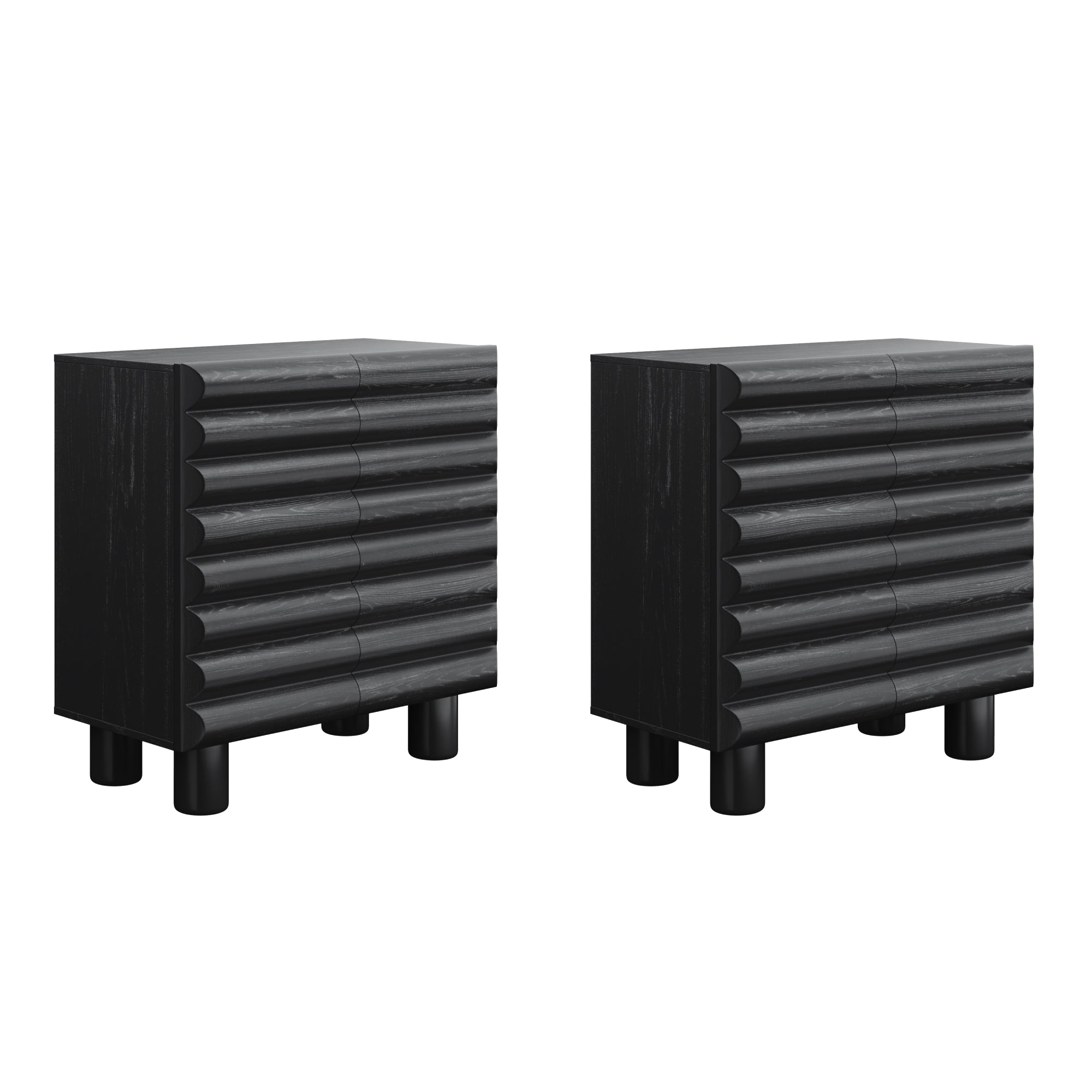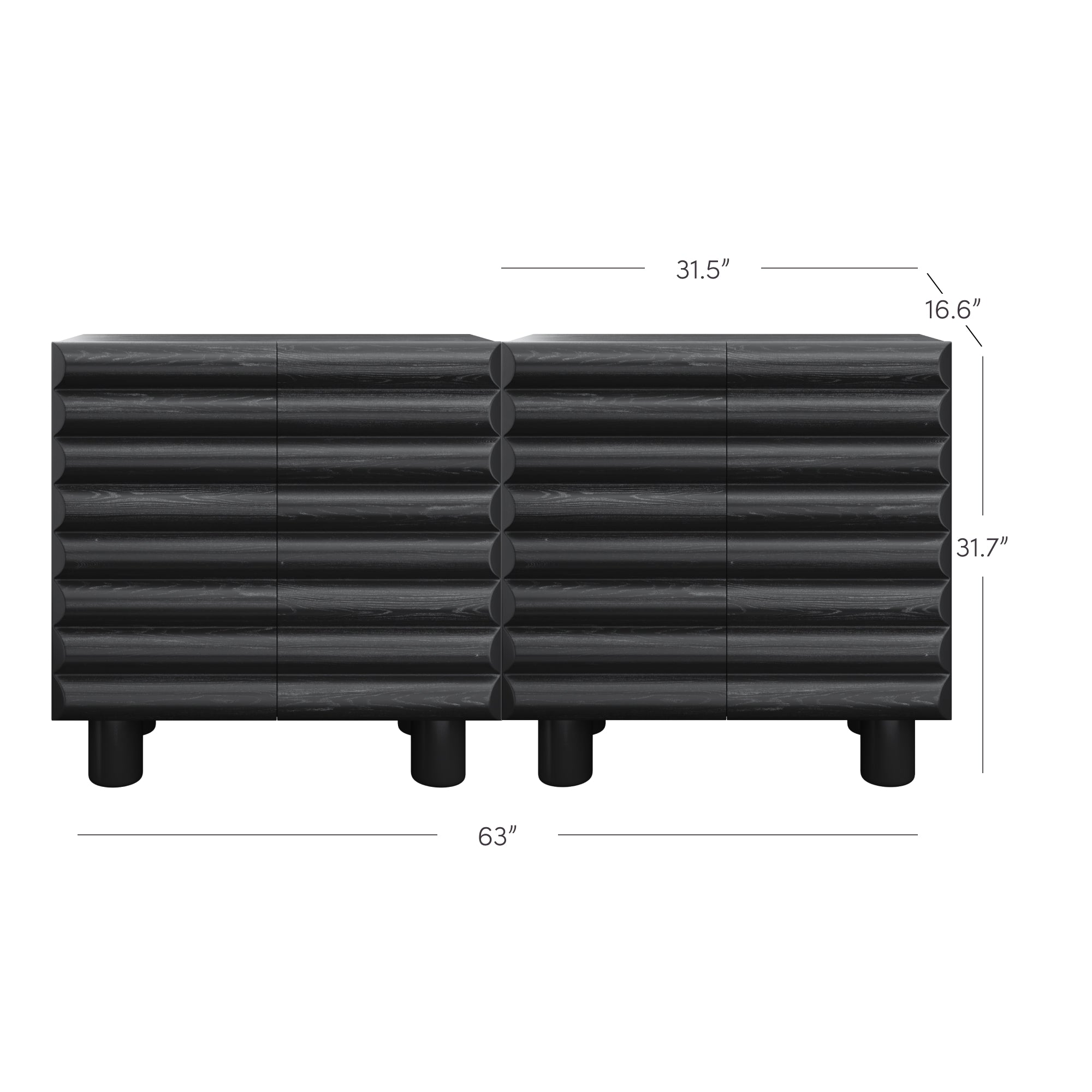 Wooden TV Stand Cabinet with Sculpted Door Black (Set of 2)